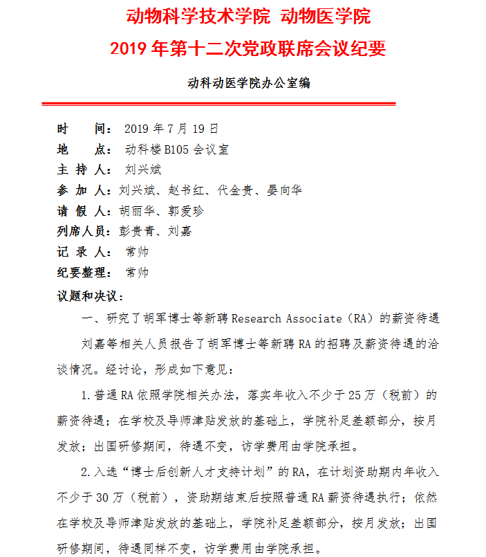 【党政联席会纪要】2019年第十二次院党政联席会纪要