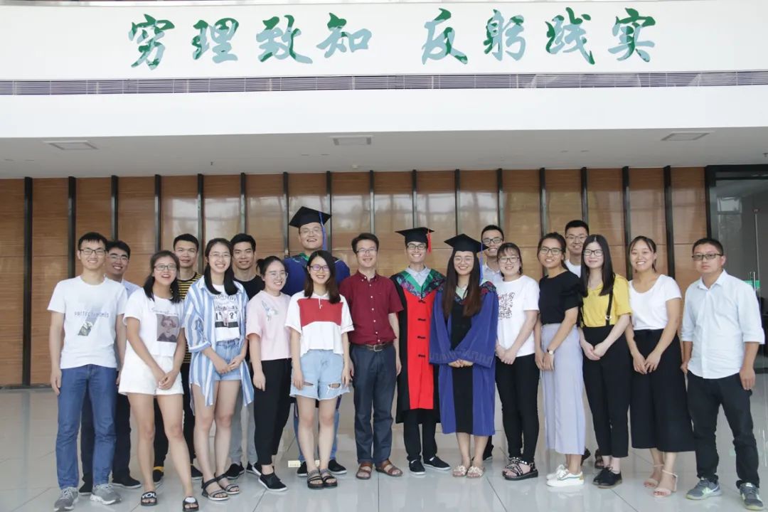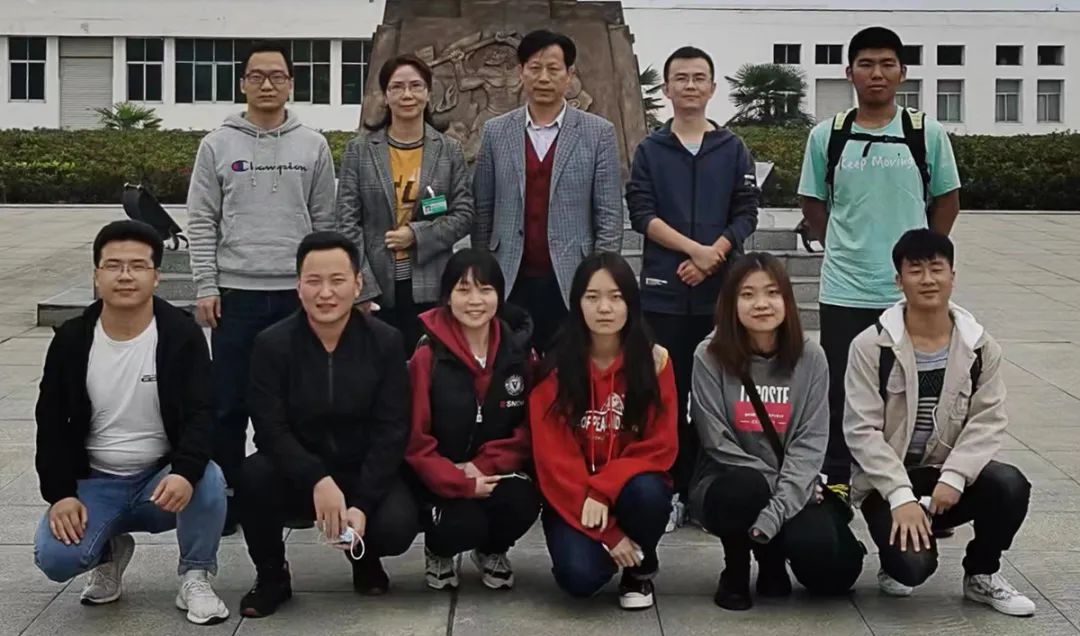 ▲华中农业大学张启发院士、副校长严建兵与获奖代表在洪山礼堂前合影(徐行 摄)