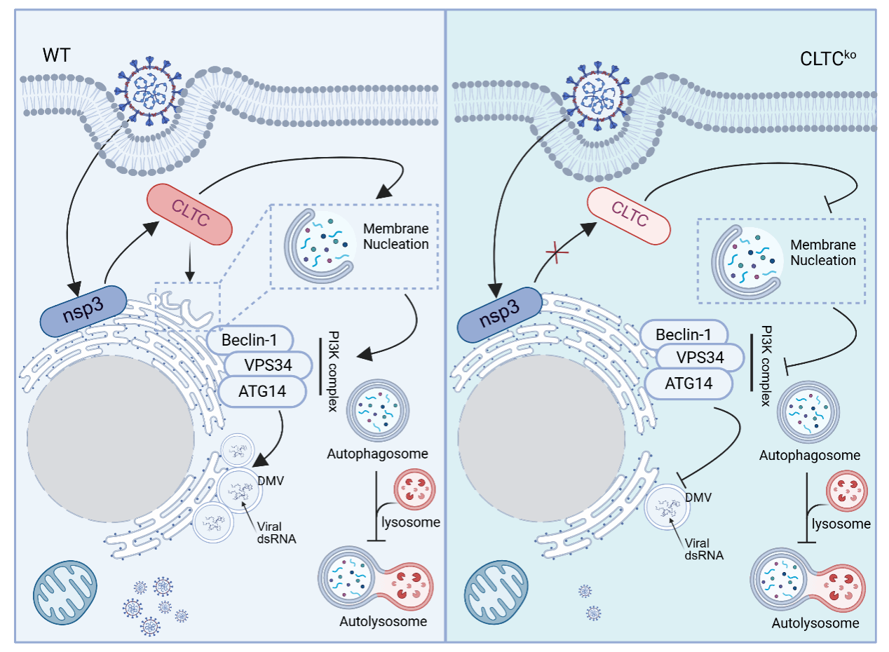 CLTC参与冠状病毒双层囊泡形成模式图