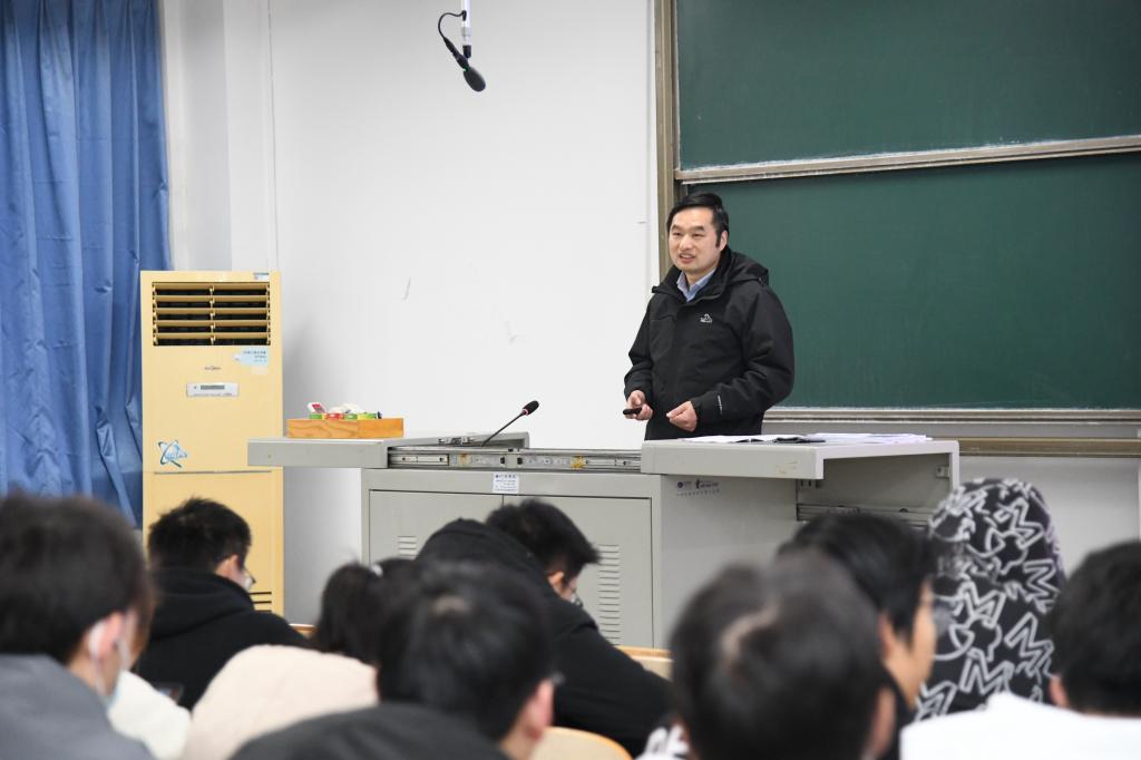 (通讯员:殷千懿 摄影:徐行)12月12日上午,校党委副书记王从严在二教105教室面向动科2301班、动科2302班、动科2303班讲授形势与政策课程,生动而深刻地阐述了“全面推进乡村振兴,加快建设农业强国”的青年使命与担当。