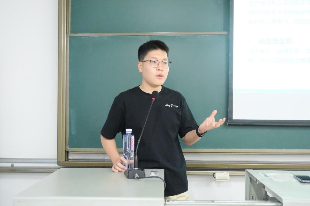 会中,戚宝磊从“2023年全国普通高校竞赛排行榜”切入分析,并向同学们着重讲解了“互联网+”和“挑战杯”两项创新创业竞赛。他指出,“挑战杯”分为“大挑”“小挑”两个项目:奇数年举办“大挑”——全国大学生课外学术科技作品竞赛,偶数年举办“小挑”——中国大学生创业计划大赛。除了主体赛的三个赛道外,还有“红色专项”“揭榜挂帅”“黑科技”三个专项赛道。“互联网+”则分为高校主赛道、青年红色筑梦之旅赛道、产业命题赛道。高校主赛道分为本科生组和研究生组,并向下细分为创意组、初创组、成长组;青年红色筑梦之旅赛道分为公益组、创意组和创业组。戚宝磊指出,同学们对于参加创新创业赛事往往有高门槛、精技术的误区。对此,他鼓励同学们:“创新创业就是能够对于日常的技术做出突破,并使其能够具有商业性、盈利性。只要敢于将想法变为项目落地,就能开启创新创业项目。”