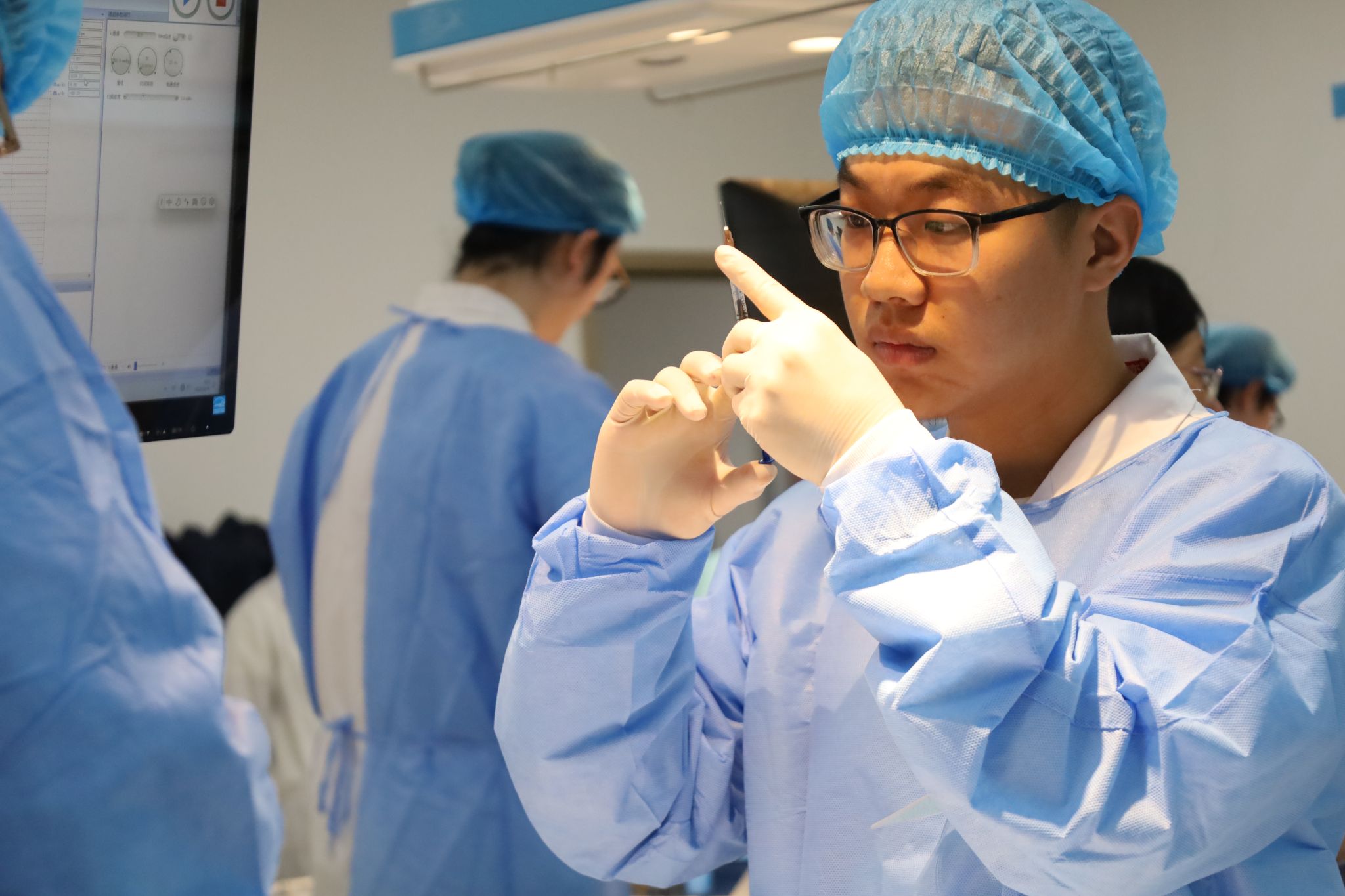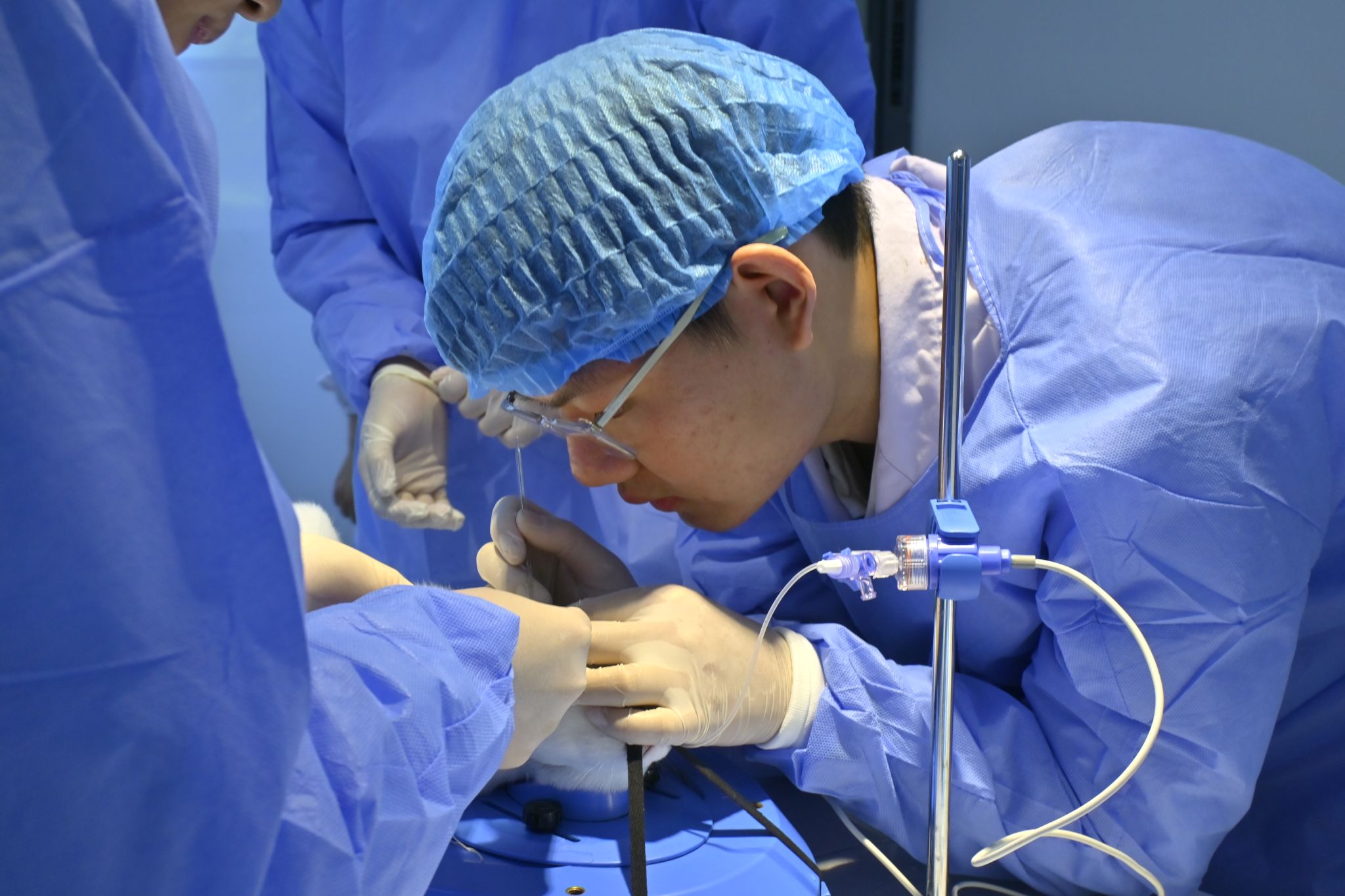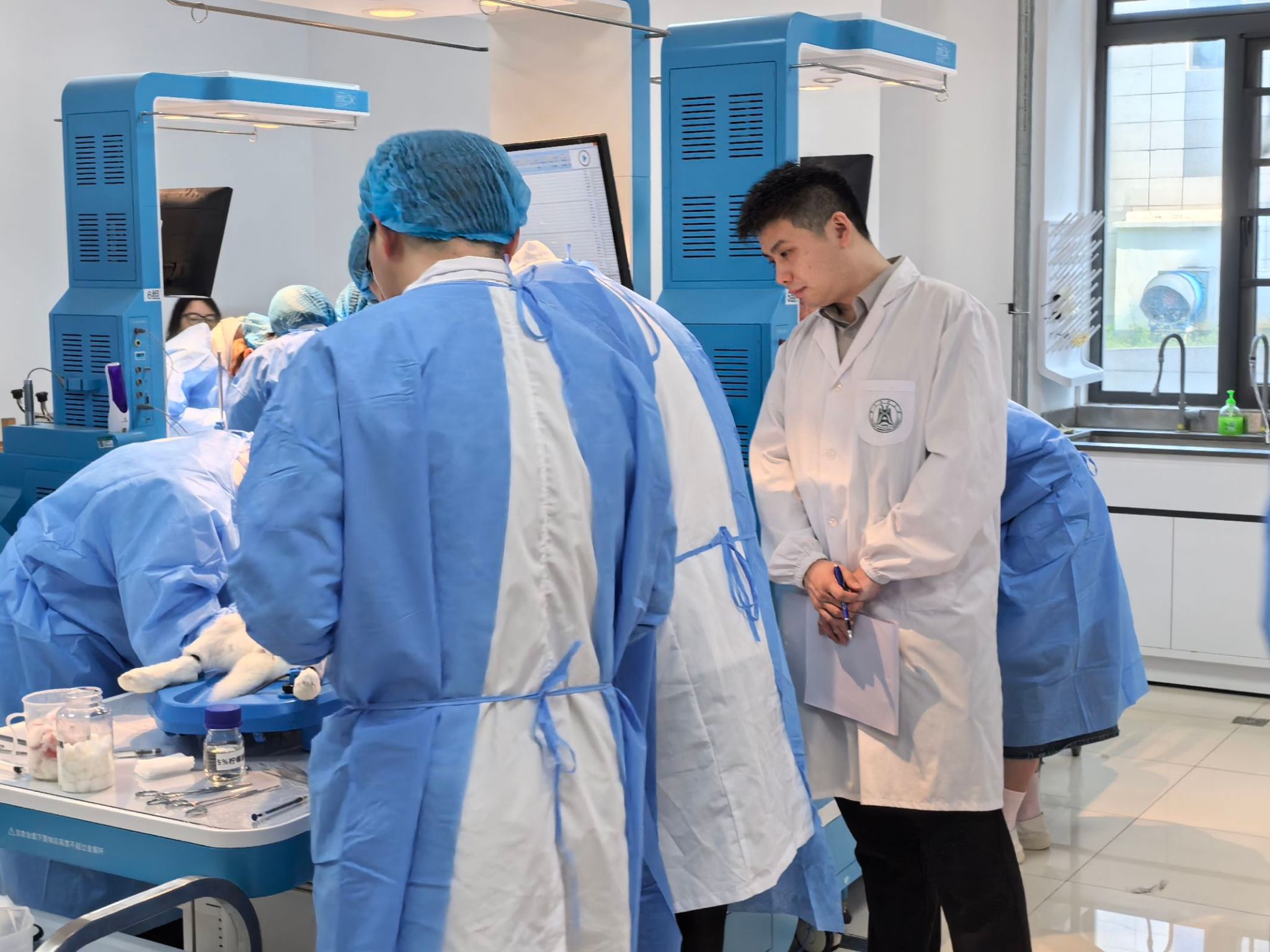 比赛过程中第12组主刀手王小雪与组员紧密协作,全程操作规范有序,临危不乱,小组成员配合默契,仅用时四十余分钟便完成实验。动脉插管环节,王小雪依托扎实的专业技能,严格把控每一个操作细节。两名辅助成员亦展现出高度专业性:一人专注器械传递,另一人实时监测并记录数据。赛后,组员秦诗尧总结道:“明确的分工、默契的配合,以及赛前反复推演的操作流程,是我们顺利完成实验的关键。”第8组在进行动脉插管时突发大出血。队员们迅速采取应急措施展开抢救。赛后复盘时,组员李嘉成坦言:“尽管我们在赛前进行了系统性训练,但实操中仍出现技术偏差。这次经历让我们深刻认识到,实验中任何细微疏漏都可能酿成严重后果,在一定程度上这也是一种收获。”