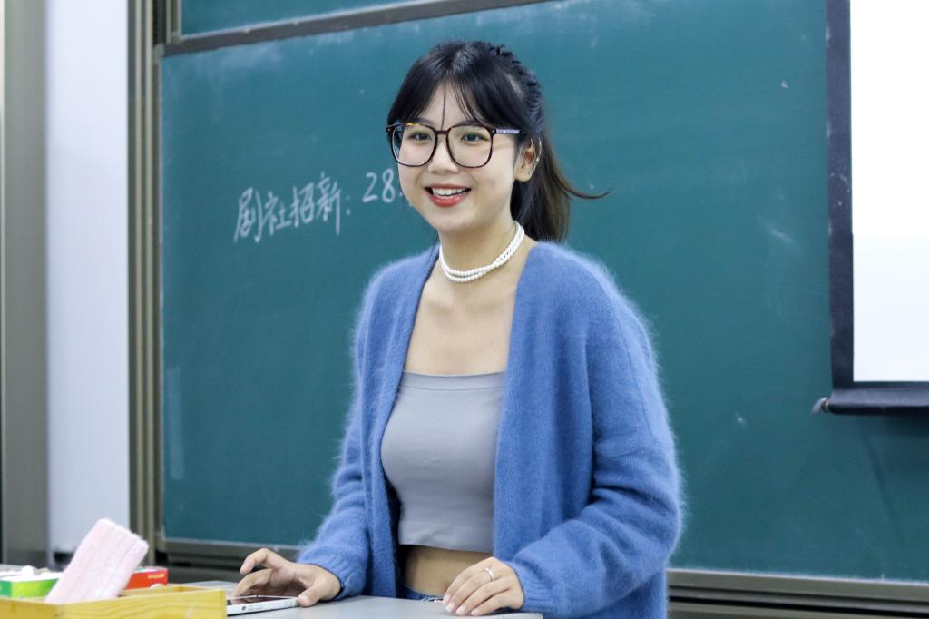 作为院合唱团成员,金尹淑婵分享了合唱团轻松愉快的日常。随后她简要介绍合唱团的声部组成及各声部的要求。金尹淑婵在提及招新要求时讲道,新成员无需拥有很高水平的唱歌技巧,能基本掌握音律即可,“合唱团欢迎每位热爱音乐的同学。”
