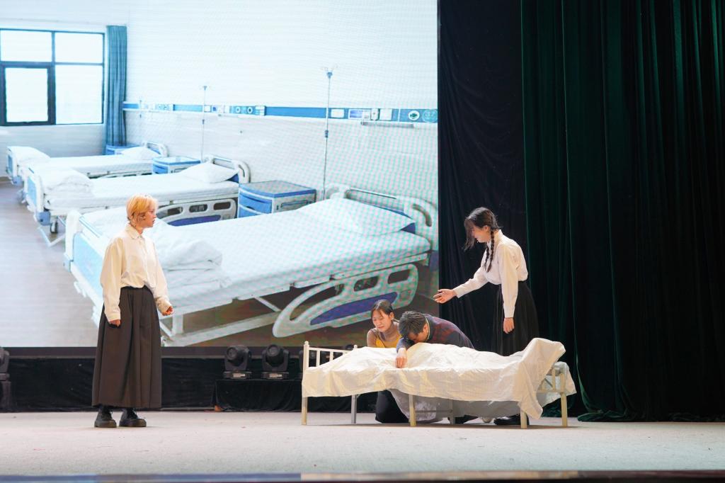 面对紧迫的备赛时间、剧本的多次改动,为呈现更好的舞台效果,瑧行剧社演员组的成员利用午休时间进行加训,力争做到台词咬字清晰、动作生动传神。编剧组构思巧妙的剧本则为演出的顺利进行打下了坚实的基础。而在幕后,道具组与剧务组成员的努力也是心理情景剧最终得以完整呈现的重要原因。