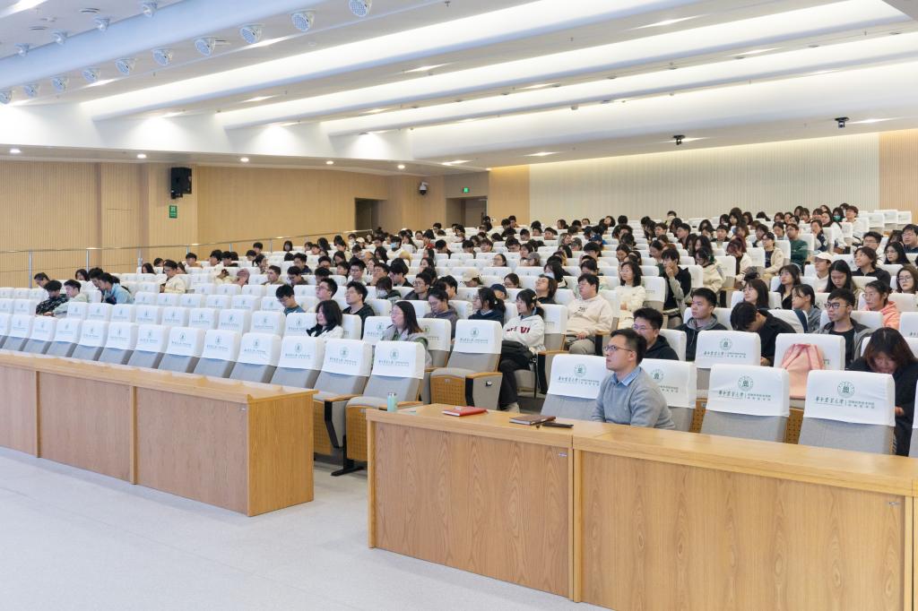 随后,汪昱均针对考研基本情况、大致流程两方面展开详细介绍。通过展示历年本院学生考研上岸率的数据,她指出,“考研并不简单”“复习备考需要重视”,希望选择考研升学的学生能够尽早准备,保持稳定的心理状态,坚定考研上岸的意志。此外,汪昱均还介绍了其他的升学途径,从学制与待遇、和双学位的区别介绍“第二学位”的相关信息。对于选择毕业后参加工作的学生,汪昱均表示:“处于考研热潮的时代,能找准定位,将就业作为发展方向,说明自身对未来有明确认识。”关于就业的类型,她主要介绍就职企业、公考公选、项目就业、自主创业等方式,并讲解部分类型的优惠政策,鼓励大家提前做好求职准备,积极就业。汪昱均指出,选择就业的学生要重视暑假实习的机会,以求获得了解职位信息,增加转正的概率。
