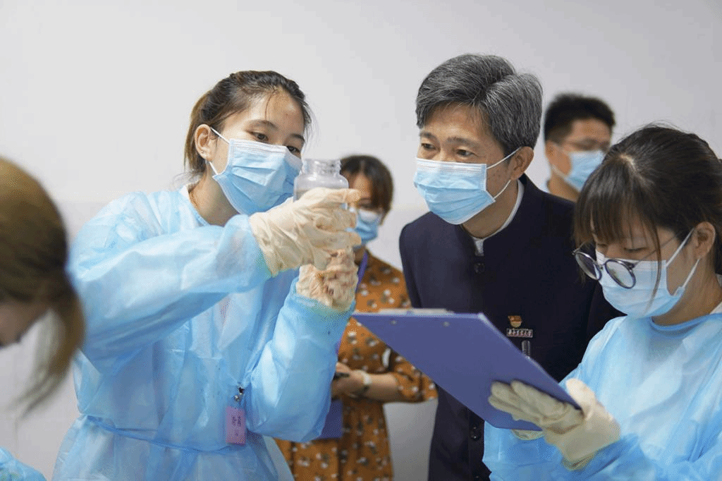 “鸡肝颜色泛黄是什么病症表现?”在动物医学技能大赛赛场,高翅与正在进行鸡病理解剖的选手们展开讨论。高翅还听取了指导老师的有关汇报,观察参赛选手们的实操细节,并为同学们的实验熟练度与专业度点赞。