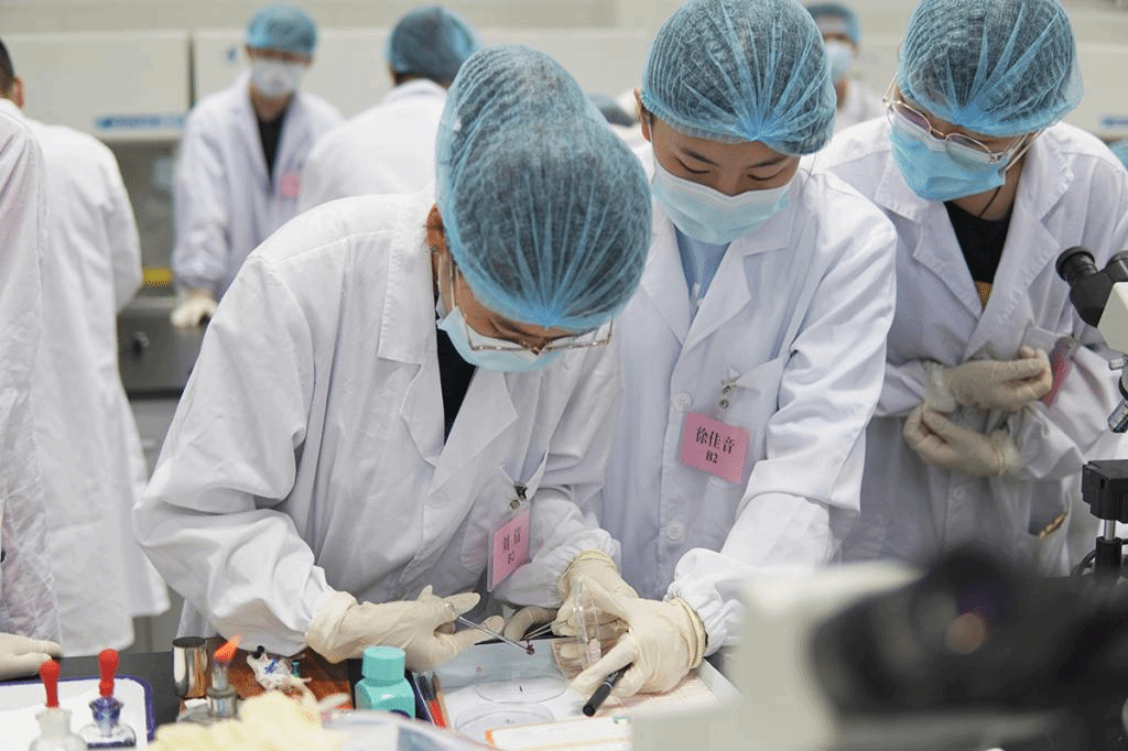 在为期一天的角逐中,动物医学专业技能比赛分为病原菌检查、外科手术、禽病理解剖三个部分,动物科学技能比赛分为猪的外形评分及活体背膘厚测定、饲料原料快速鉴定与掺假识别、家禽生产学核心技能三个部分。