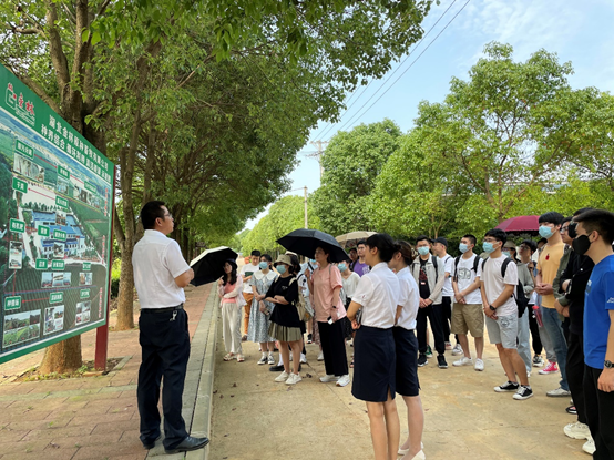 金林行政总监金加正先生带领华农师生一行参观公司杨湖生态养殖基地。他介绍道,正所谓“猪多肥多,肥多粮多,粮多猪多”,公司以生猪养殖为主体,应用生态循环养殖模式,在基地内建立了完善的粪污收集处理系统。通过对雨污、猪粪污收集进行固液分离和厌氧发酵,产生沼气用于发电,沼液、沼渣、有机肥用于茶果菜林种植与水产养殖,达到种养结合、循环利用、清洁能源目的,做到粪污减量化、处理无害化、利用资源化。公司即将投产的株山种养循环万亩生态园,更是创新了“猪、果、花、粮、渔水陆循环型模式”,旨在打造以畜牧为核、田园为底、产业交融的绿色农业经济体和田园养心生态园。