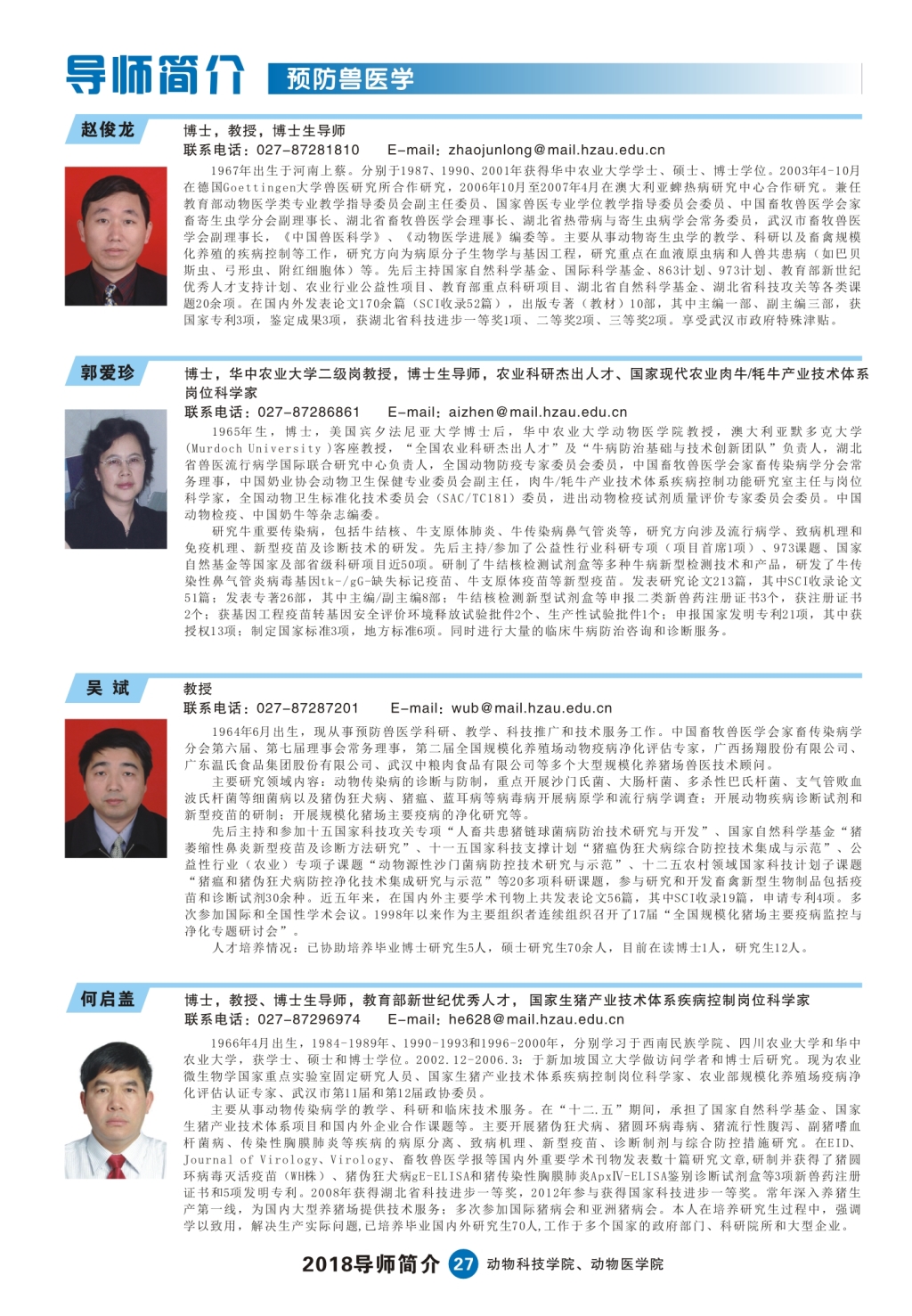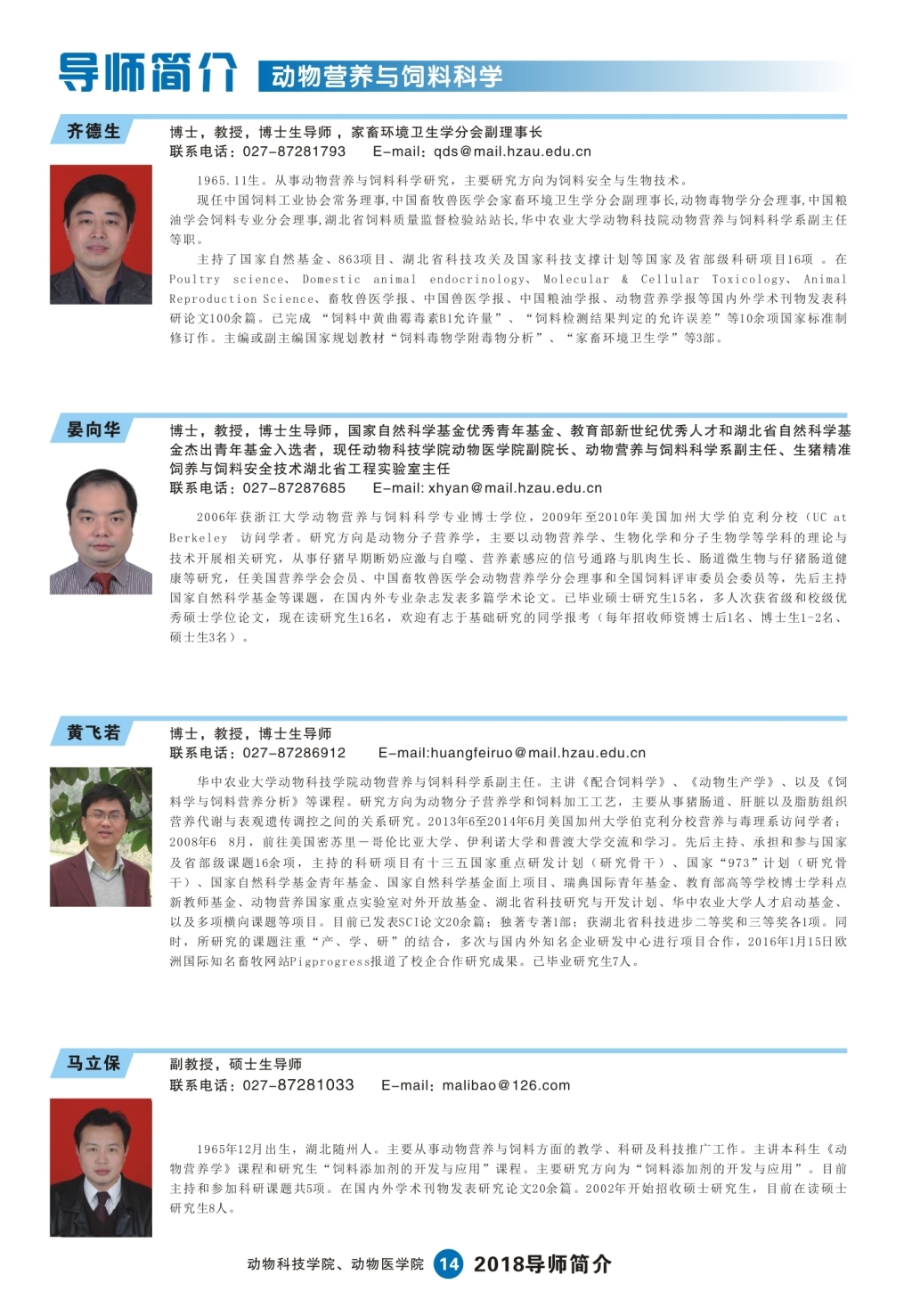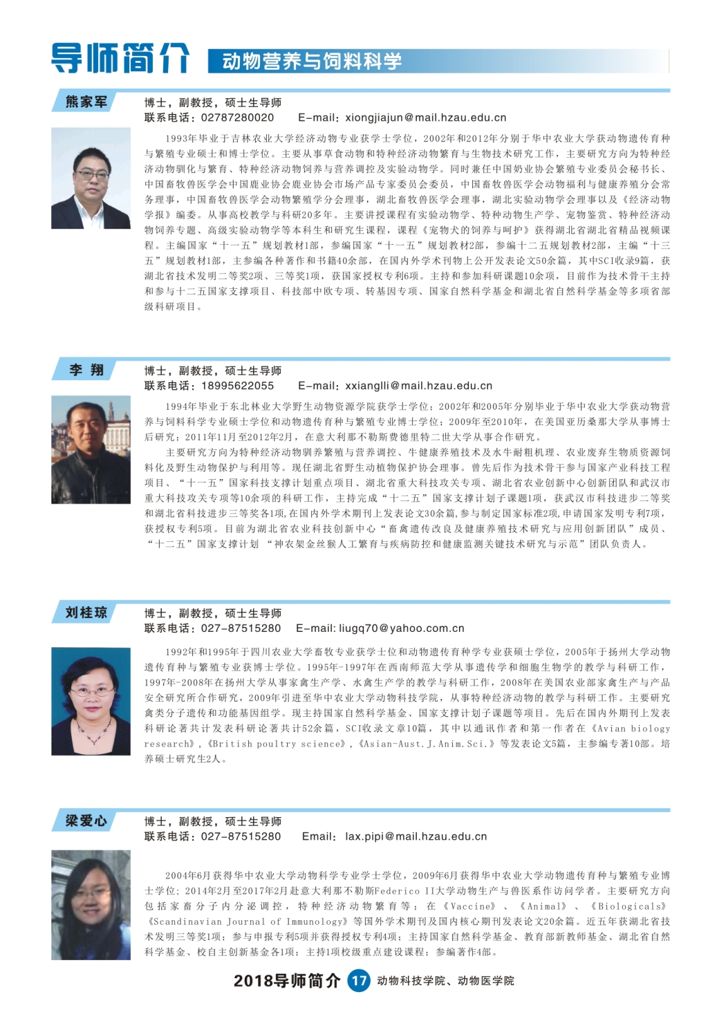 2018研究生导师简介手册