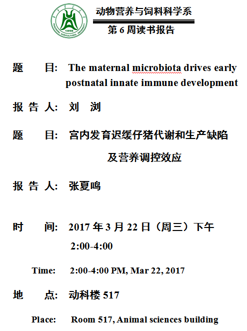 动物营养与饲料科学系2017年第6周读书报告