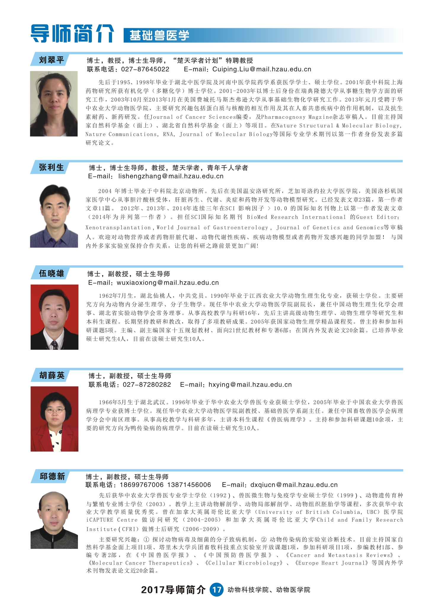 2017五楼自拍 研究生导师简介手册