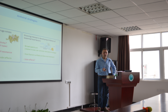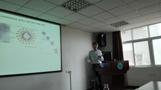 ,并于4月7日上午在湖北省生猪健康养殖协同创新中心分别做了题为“小RNA病毒的复制与抗病毒药物研究”和“冠状病毒进入宿主细胞途径”的学术报告,动科动医学院众多教授及学生参与了本次报告。