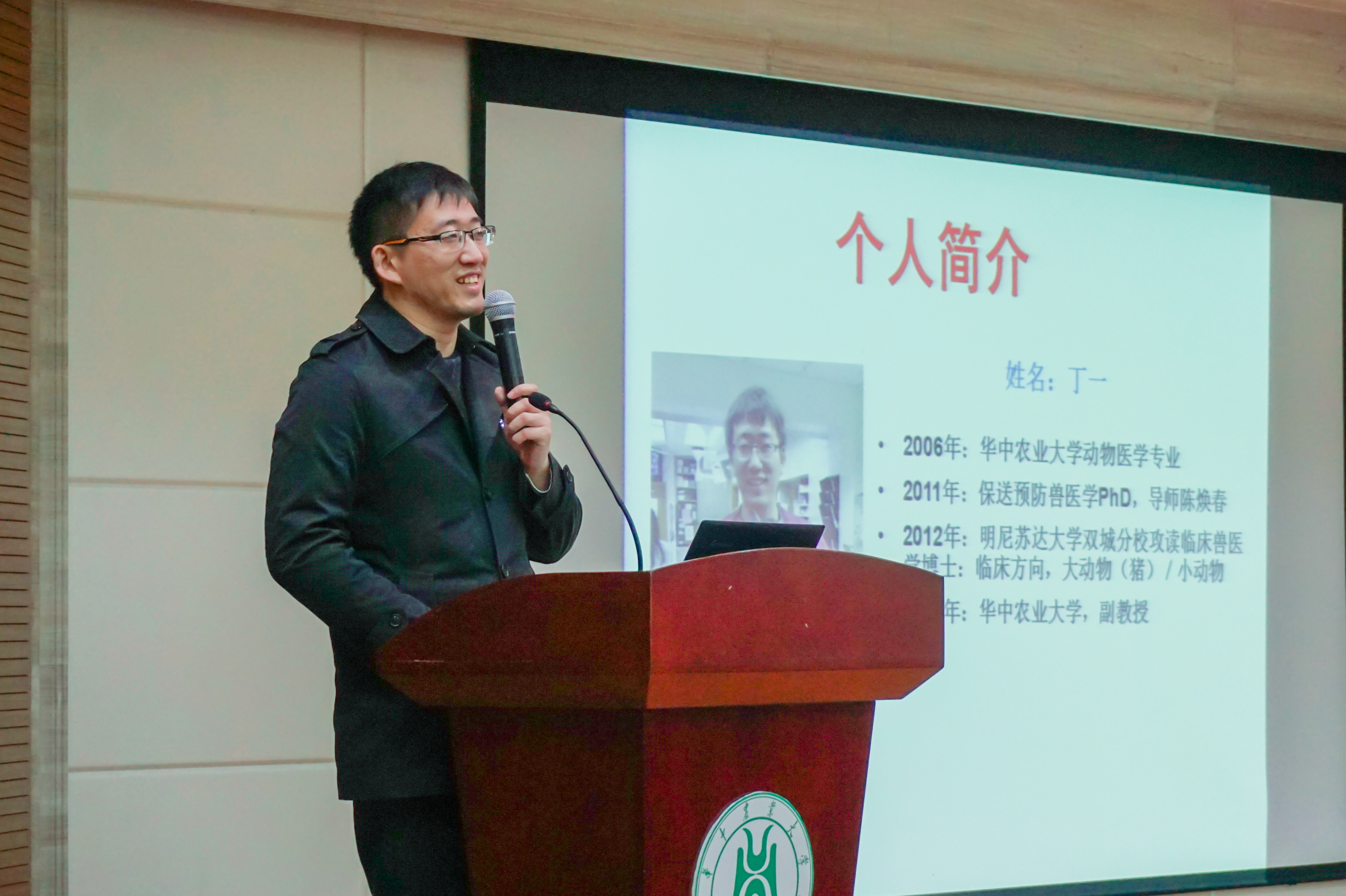 副院长晏向华教授主持,美国职业兽医博士、副教授、美国兽医协会会员沈瑶琴、丁一在会上跟大家分享了自己的DVM之路。会前,晏向华从国内外兽医专业男女比例的变化、国外大学兽医专业的硬件设施与国内大学的对比两方面指出了我国高等教育兽医专业的发展趋势,并鼓励更多的青年学生加入DVM项目,学成归来后为我国兽医学科的发展贡献自己的力量。