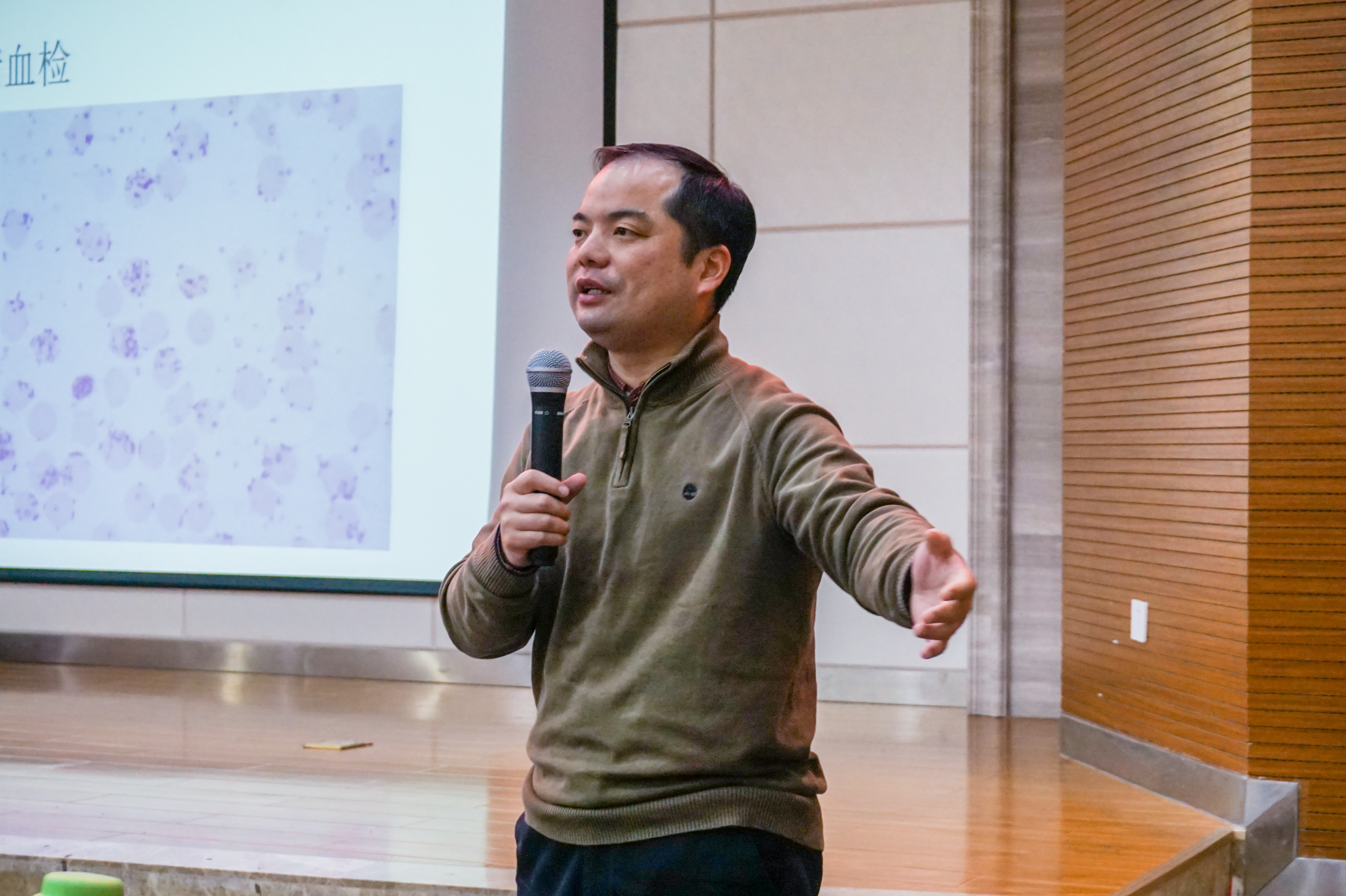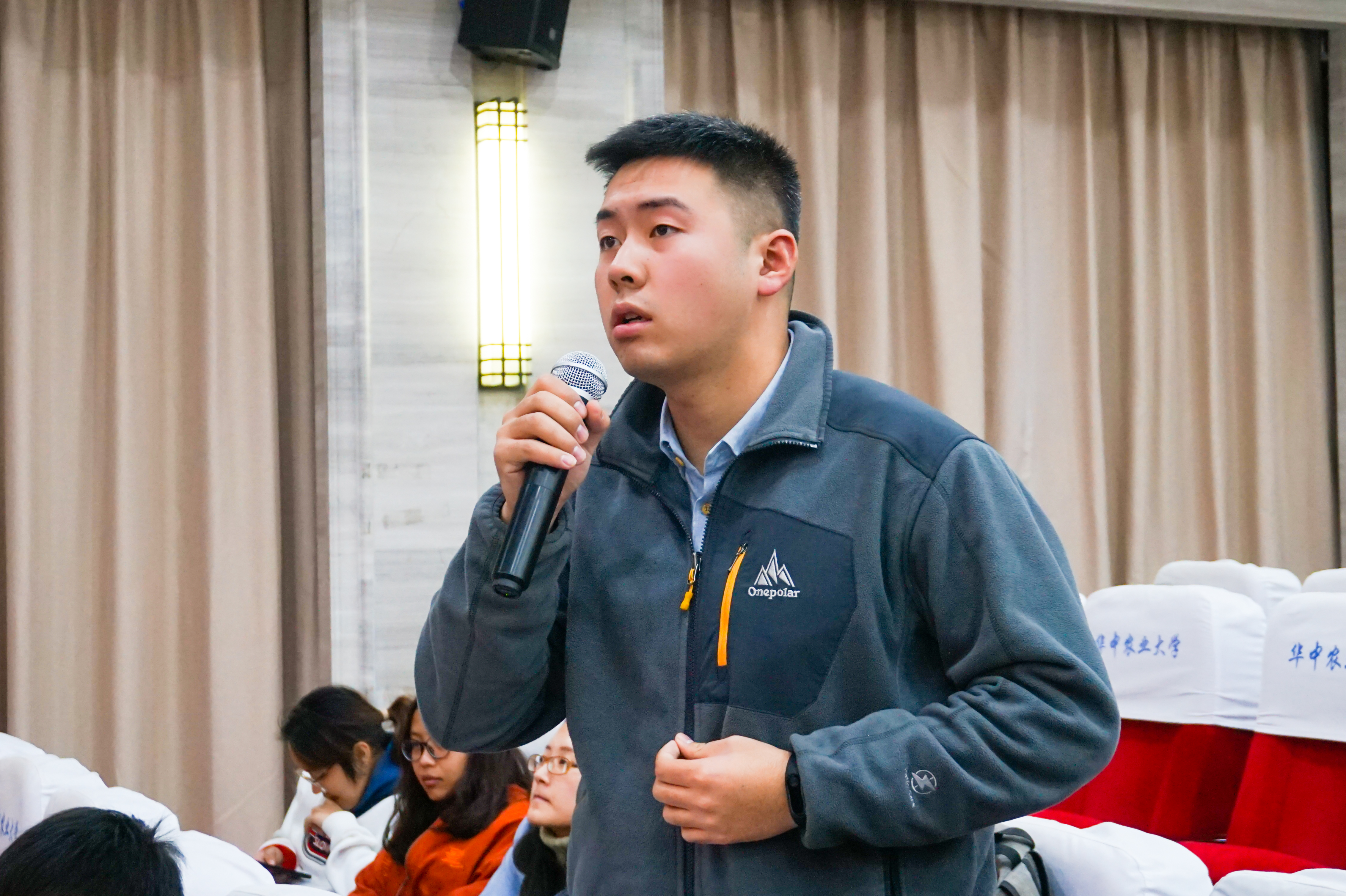 丁一针对中美合作职业兽医项目简介、国外DVM与国内兽医的比较两大方面进行宣讲。他表示DVM项目早在清朝时就为我国培养多位畜牧兽医专业人才,这也为我国兽医事业的早期发展打下坚实基础。当谈到中美兽医教育比较的时候丁一从学位制度、知识结构差异、临床实践、学习疾病的诊断过程四个方面并结合具体的案例展开论述。他表示国外临床研究的问题大多来源于临床实践,这是和我国很不一样的地方;此外他还指出,国内疾病诊断教学虽详细全面,但其从“疾病到症状”的教学方式却与临床“症状到疾病”的实际略有不符。在提问环节中,在座学生们针对自己不懂的问题踊跃发问,沈丁二人积极回答。