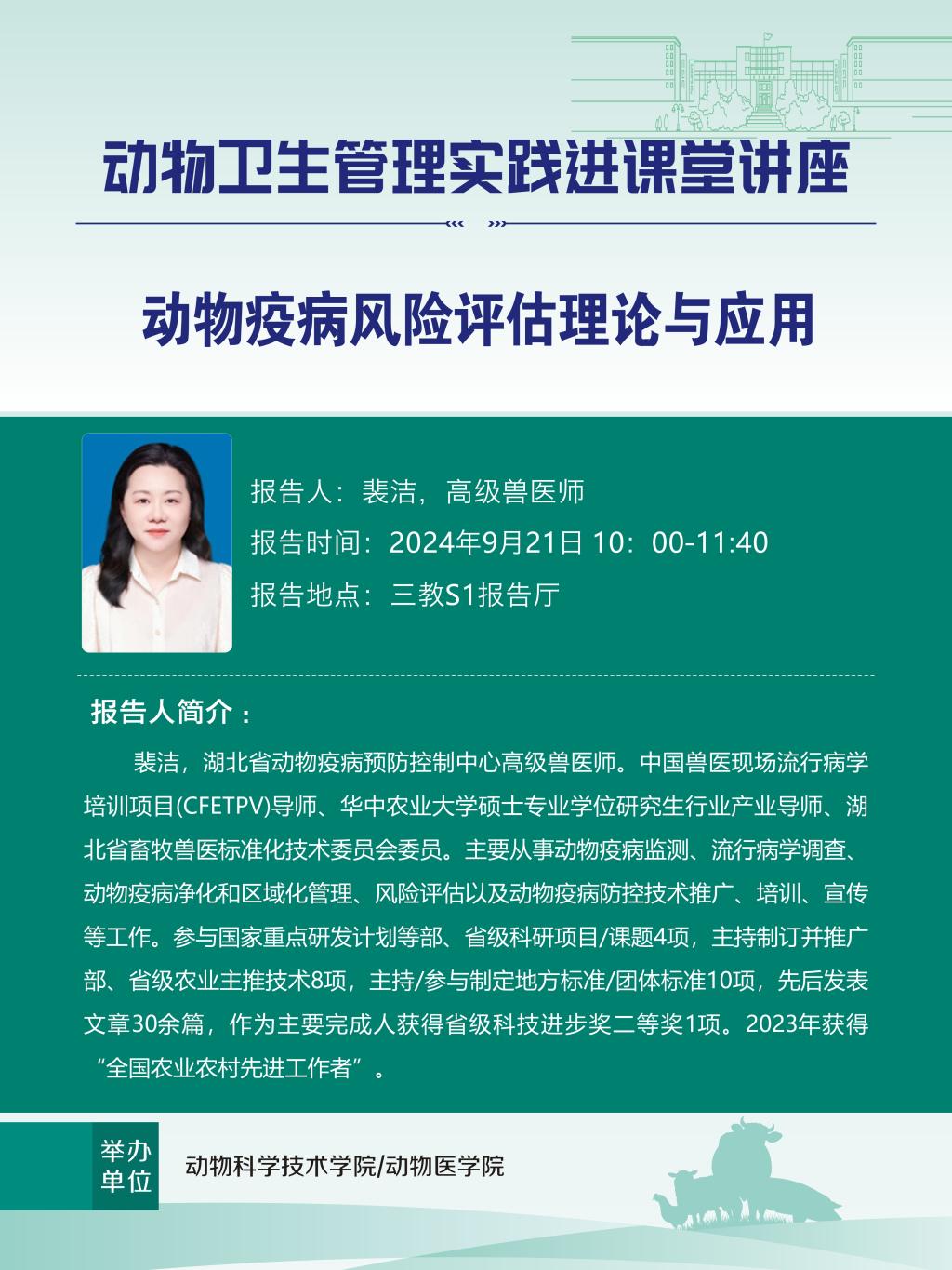 动物卫生管理实践进课堂-动物疫病风险评估理论与应用