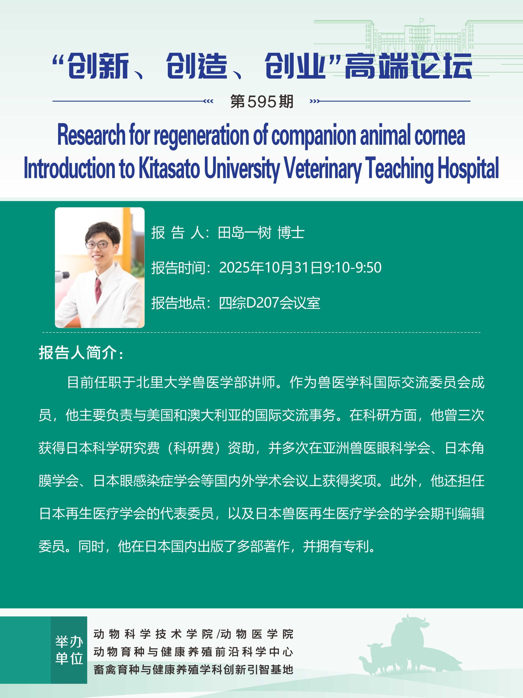 Research for regeneration of companion animal cornea Introduction to Kitasato University Veterinary Teaching Hospital