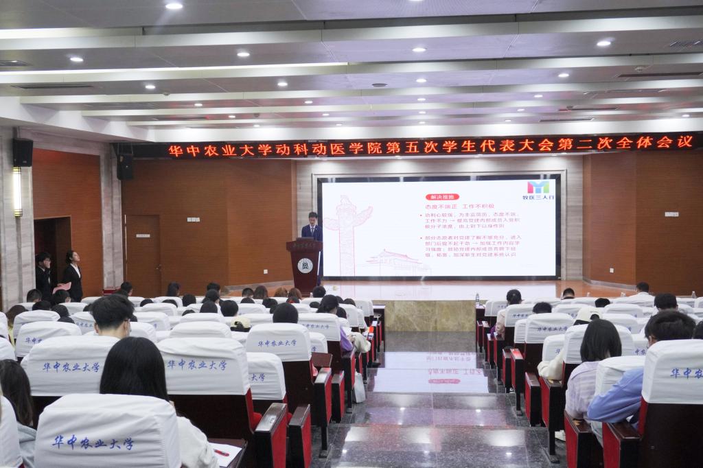 会议听取审议了学院2021-2022学年度学生会工作报告,学院学生会轮值主席贺悦从学风建设、权益维护、文体发展等方面进行工作汇报。她表示,学生会各部门致力于引导学生思想建设,激发学生内在动力,营造浓厚的学习氛围。此外,学院还举办了多项师生融乐的文体活动,营造了良好的文体氛围,达到了“文体两开花”的效果,充分展示了牧医人的的风采。“用心做好服务,真情助力成长”,贺悦真诚希望学院学生会在未来工作中以服务同学为中心,进一步创新工作方式方法,推动学生工作跨步发展。