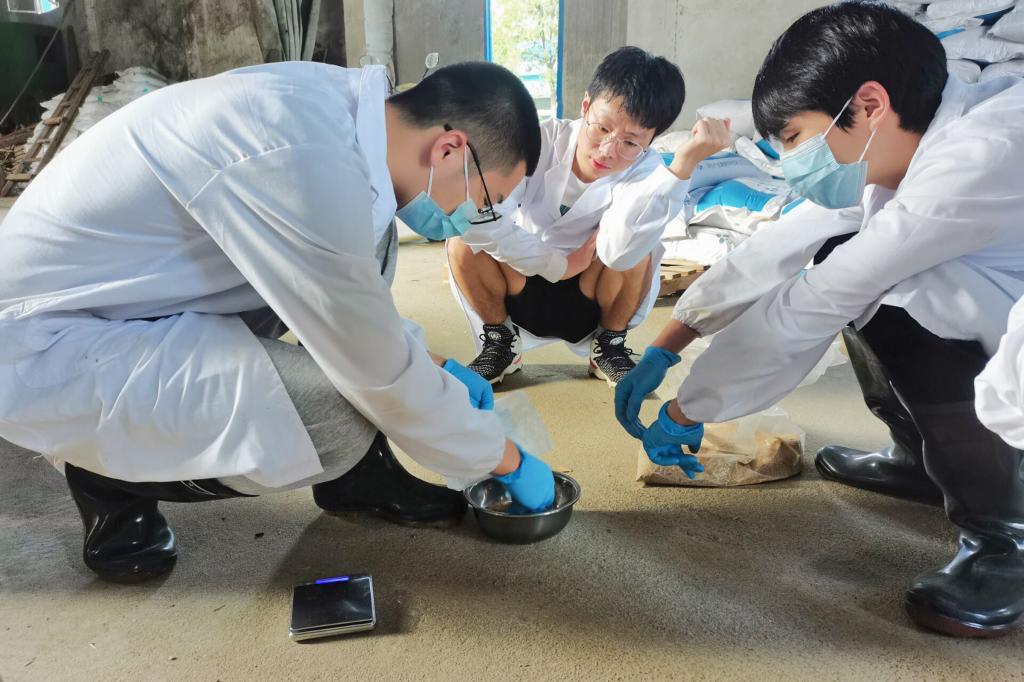 夏季的气温较高,为减小温度给奶牛食欲带来的影响,凌晨五点钟,实践团成员就出发前往牛场,展开饲养准备工作。在经过明确的任务分组后,各组成员便在指导老师协助下开展了各自小组的任务。“将抗生素替代物混入饲料中,对特定编号的奶牛进行饲喂。”谈及此项工作任务的意义时,张李文表示:“唯有保证饲喂过程中每一个环节的精准性,才有可能保证定奶牛成功采食。”