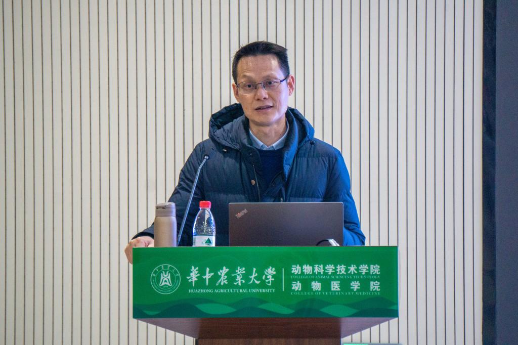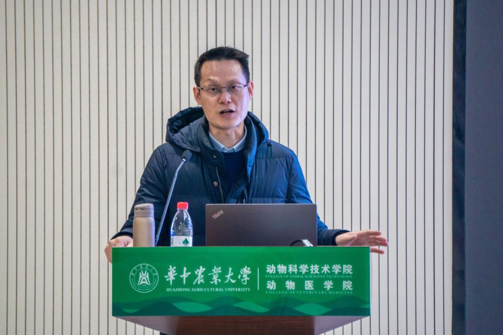 于四综F101告厅开展主题为"疫苗发展史与科学故事"的讲座。教育部动物医学教学指导委员会副主任委员、预防兽医学系教授曹胜波受邀分享。