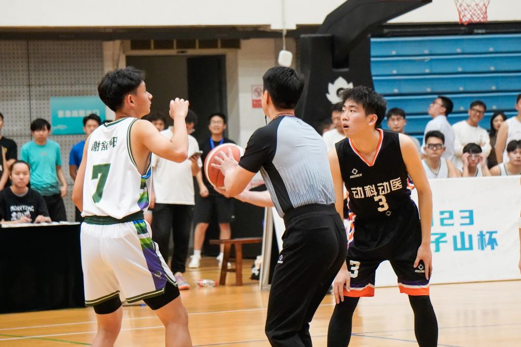 随着裁判一声哨响,比赛正式开始。水产队发起猛烈攻势,动科动医队反应敏捷,迅速形成严密的防守阵型。14号翁古吉昌阻拦对方进攻后,突出重围将球传至对方篮板下。在队友的配合下,7号易光远精准投篮,拿下两分。