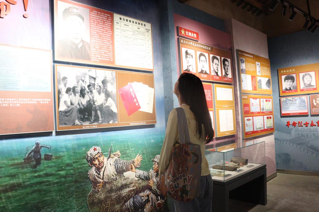 随着“红星耀丰碑”的标语的出现,革命史在队员们的眼前展开。据介绍,在这个鄂皖交界的不起眼的小地方,共走出了3位开国元勋、1位开国上将、5位开国中将和29位开国少将。其中,就有队员们熟知的三位开国将军——徐向前、李先念和王树声。走过前厅,便是“立夏节起义烈士纪念园烈士名录”墙,密密麻麻的姓名排列在墙面之上,暗示着在某个时间节点内一条又一条鲜活的生命在壮丽的革命长途中的消逝。队员们的心也在观摩中逐渐低沉。“高裕奎烈士去世的时候只有14岁。”支教队员李林睿说道。“1914——1928”短暂的岁月区间让每个支教队员都陷入了悲伤之中。“革命烈士永垂不朽!红色丰碑永存!”展厅的结束语成为了每个支教队员参观后的共同信仰。立夏节起义,正因有前赴后继的烈士,才能取得成功;社会主义建设,正因有赓续接力的青年,才能愈加完善。