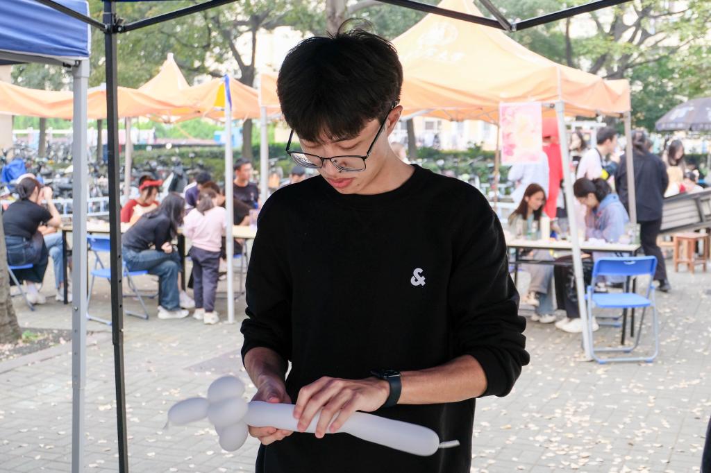 活动加入了许多动物元素比如制作气球小狗,这增添了不少乐趣与轻松。“肢体表达——你划我猜”与“手工创作——魔术气球小狗制作”活动大受好评,一根根色彩亮丽的长条气球在参与者手中变幻出了不同的花样,气球小狗、气球小马、气球独角兽都是同学们奇思妙想的结果。“我相信我们的默契,继续加油!”“你划我猜”游戏在培养团队协作能力和默契的同时,锻炼了同学们的肢体表达和处理信息的能力。