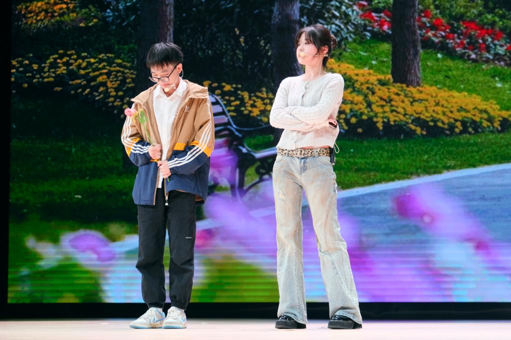 在备战决赛期间,从修改表演细节到演员排练再到道具制作,瑧行剧社各部分通力协作,对于分工内的任务一次次精细打磨,不断开会讨论,甚至加班加点打磨表演效果,最终在决赛舞台上交出了满意的答卷。“初赛第一幕的出场其实是我自己口述‘小美是我大学喜欢了三年的女神……’,但是决赛我们采用了背景语音‘注意看这个男人叫小帅……’。像这种用背景音来渲染表演的形式在决赛有很充分的运用。”剧中男主人公小帅的扮演者游嘉豪谈到。