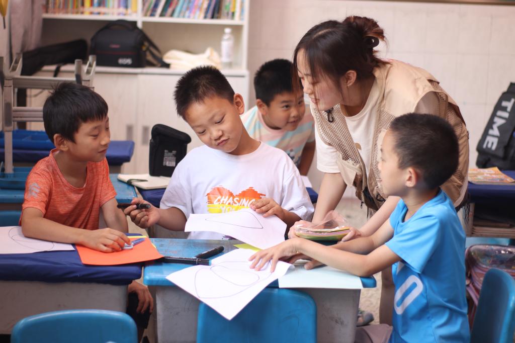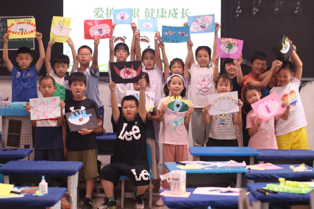 在爱眼科普环节中,主讲志愿者通过小游戏和提问的方式成功激发学生们的课堂热情,同学们积极参与科普课堂、回答相关问题。手工制作环节中,同学们利用彩笔、彩纸等简单的材料与志愿者一起,制作出自己心目中的“眼睛”。其中一位学生描述作品道:“我制作的眼睛中长着一棵大树,因为只有好好爱护双眼才能更好的欣赏大自然。”