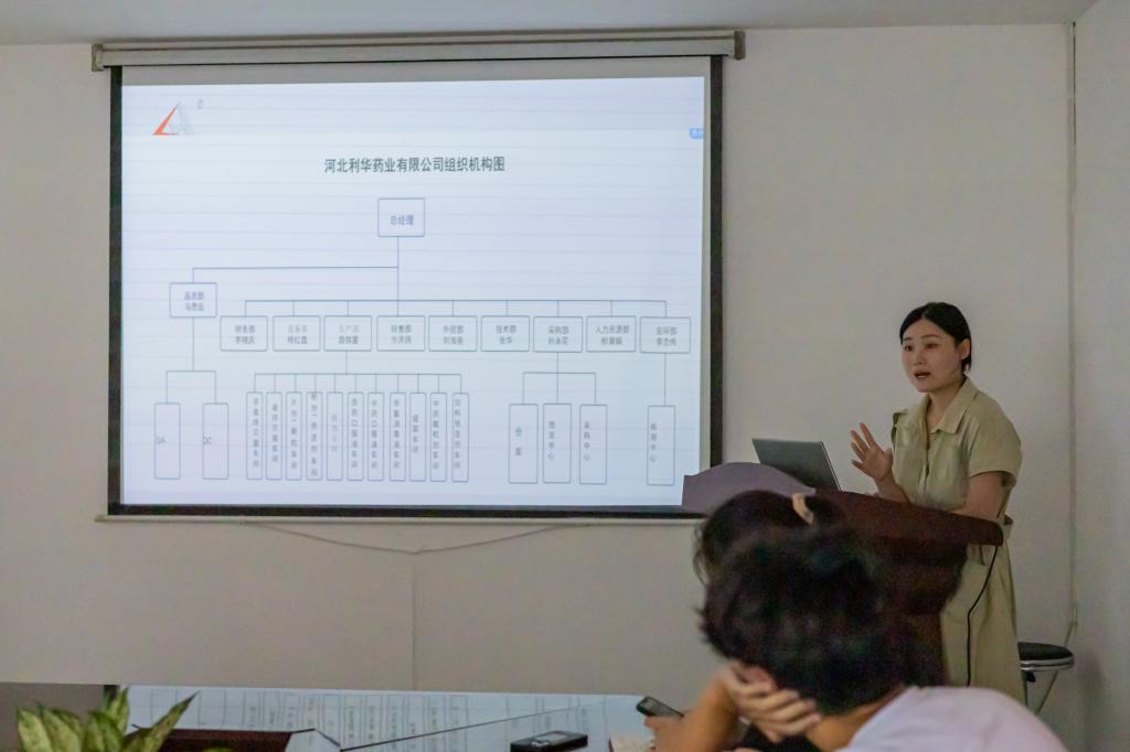 会议伊始,方庆绕向团队介绍了两位同为华中农业大学毕业生的李泽璇和贾子佳。在简短的会议后,团队了解到利华药业的发展概况、业务概况、企业布局与五楼自拍等方面内容。在公司的里程碑介绍中,充分展示了公司踏踏实实、一步一脚印的事迹,无愧于公司口号中的“百年利华、强牧兴农”。
