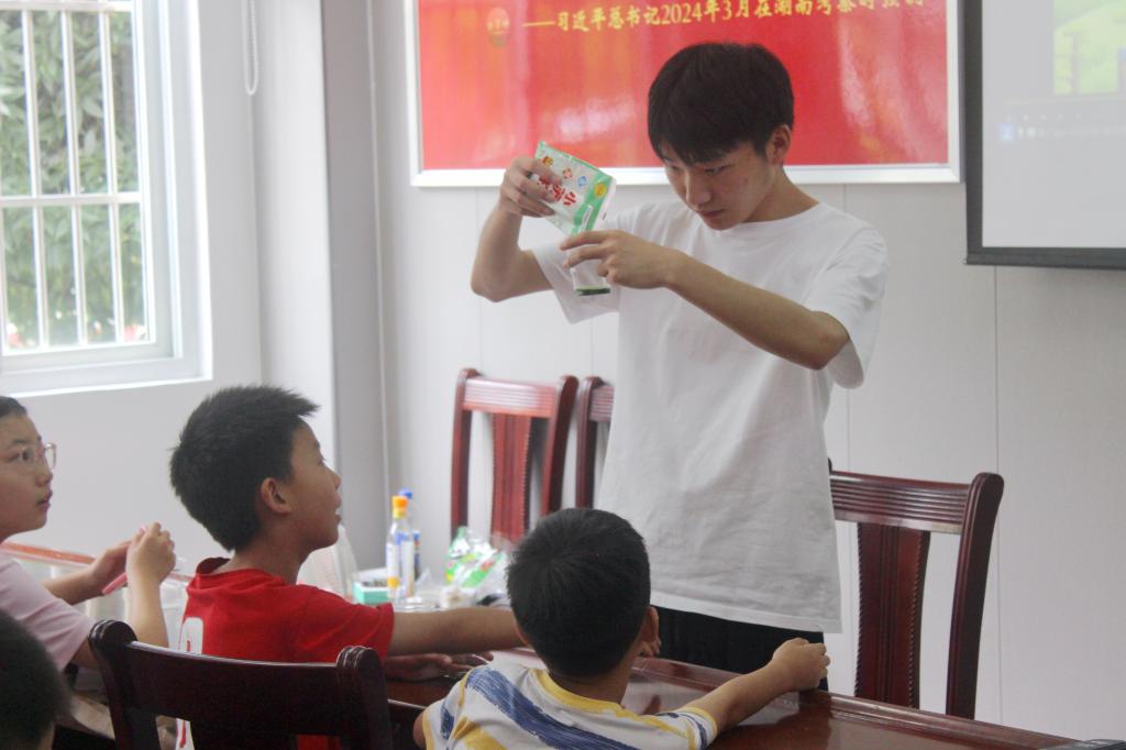 (通讯员:李佳宁 摄影:谷欣莹)2024年7月16日上午,华中农业大学保康筑梦支教队参加了由湖北省志愿者协会联合相关单位开展的“同上一堂课”活动,带领来自三溪沟村委会的34名同学一同观看由中国船舶集团有限公司七一九研究所王云帆老师讲授的《深潜人生》课程和湖北省科技馆聂煜瑶与赵雨晴老师讲授的《魔法喷泉》课程,并由同学们亲手进行实验操作,制作魔法喷泉,体验科学奥妙。