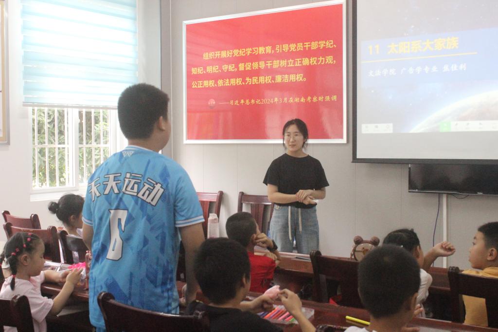 (通讯员:焦佳利 摄影:谷欣莹)7月18日,华中农业大学保康筑梦支教队在中共三溪沟支部委员会开展趣味科普课程——太阳系大家族。此次课程由保康筑梦支教队队员焦佳利主讲,通过生动有趣的语言,带领小朋友们一同深入探索太阳系的奥秘。