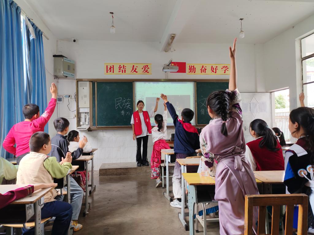 民族服饰介绍课结束后,支教队队长金岩总结说:“支教之旅不仅是我们教给孩子知识的一趟旅程,更是我们增进与当地孩子情感,学习当地文化的宝贵途径。”