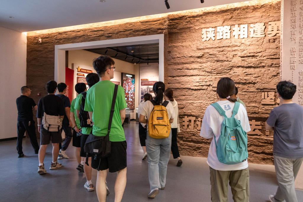 纪念馆中,刘邓大军强渡汝河的人物雕塑立于正中;雕塑两侧,刘、邓总司令对此次战役作出的重要指示被镌刻成壁画,以文字的形式永久铭记。纪念馆以这次历史性的战役为核心,精心策划了"经略中原"、"强渡汝河"、"千秋丰碑"、"红色传承"四个主题展区。实践队的成员们依次深入每个展区,通过馆内丰富的文字叙述和珍贵的实物展品,沉浸式地回顾那段波澜壮阔的历史,深刻感受革命先辈们的崇高精神与不屈意志。