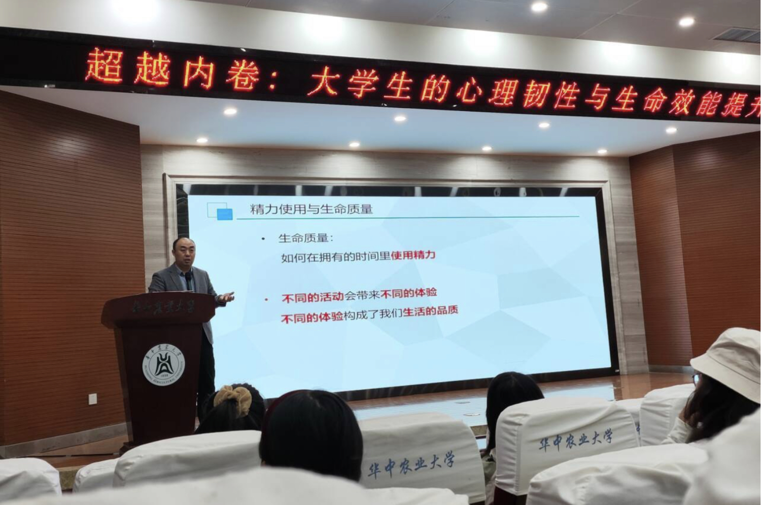 主承办、经济管理学院与园艺林学学院联合承办的第175期“狮山心旅”系列心理讲坛在学生综合服务楼501报告厅顺利开展。本次讲座以“心理韧性与生命效能提升”为主题,邀请中南财经政法大学青少年心理发展研究所所长杨子云教授担任主讲,2024级全体心理委员参与了本次活动。