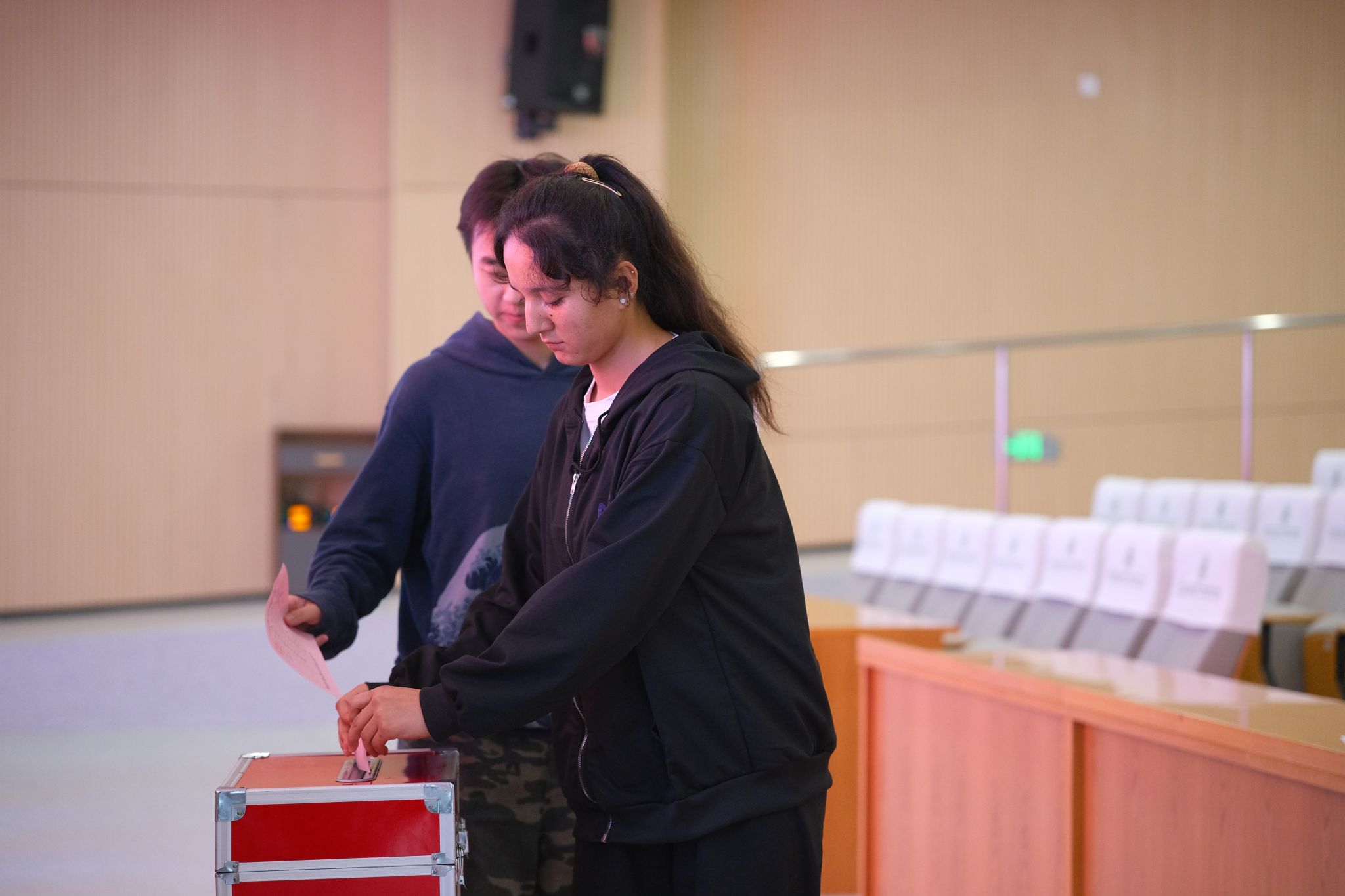 随着庄严的国歌声响起,正式会议拉开序幕。在充分讨论的基础上,全体学生代表以举手表决方式全票通过了选举办法,选举总监票人、监票人、计票人建议名单以及候选人名单。按照选举办法,参会学生代表投票选出3名21级学生、8名22级学生、10名23级学生、3名24级学生,共计24名学生作为学院代表,出席华中农业大学第二十次学生代表大会。至此,会议圆满落下帷幕。
