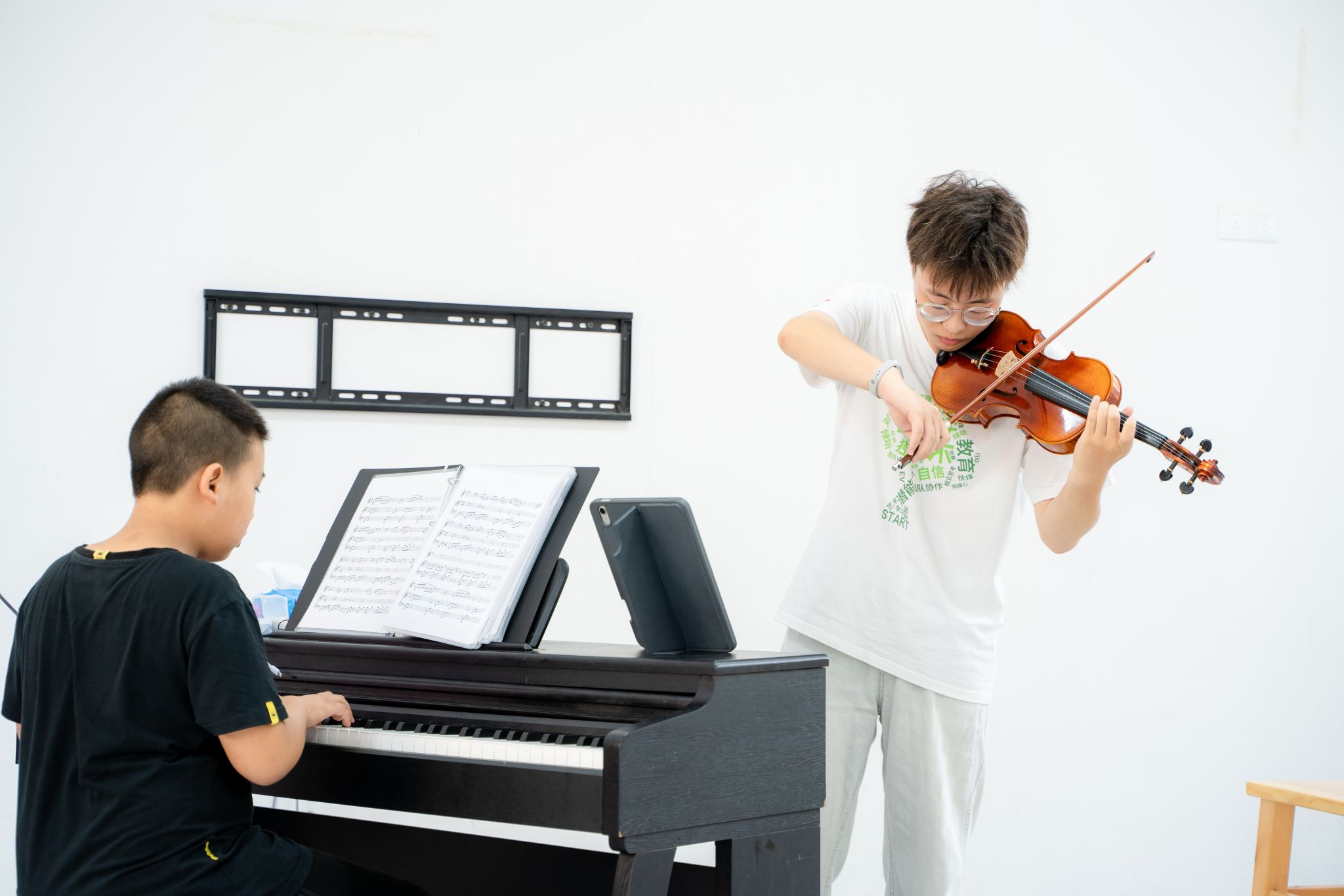 歌曲表演中,林书彤《微微》嗓音清澈如涓流,杜筱雅、刘梦瑶等合唱的《小美满》旋律温馨,传递夏令营的幸福点滴。张锦树与郑思奇 7 分钟的动作戏《武松打虎》以高难度表演将气氛推向高潮,尽显传统文化浸润成果;吴艺铎与文法学院社会学类2402班田安东带来的钢琴、小提琴合奏《大鱼》悠扬动人,彰显艺术教育魅力。汇演尾声,全体志愿者合唱《仰望星空》寄托对未来的憧憬,二营学员以《再见》收尾,既含对夏令营的不舍,亦藏对未来的期许。