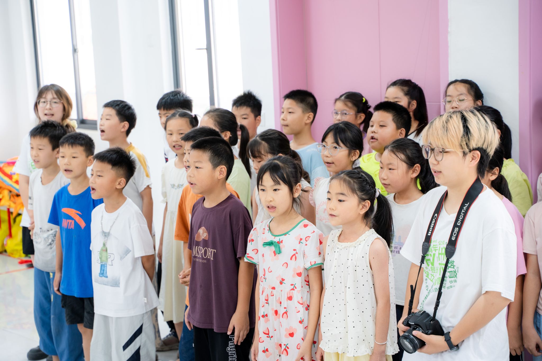 结营仪式结束后,师生们移步活动室进行文艺汇演。汇演以三营学员合唱《苟活之重生爱国版》开篇,孩子们用稚嫩却坚定的歌声传递赤诚爱国情怀。随后,一营《开心往前飞》的明快节奏与二营《记念》的温情旋律接连上演,迅速点燃现场气氛。紧接着上演的舞蹈串烧融合多元流行元素,孩子们灵动的舞姿与默契的配合引发现场掌声雷动。