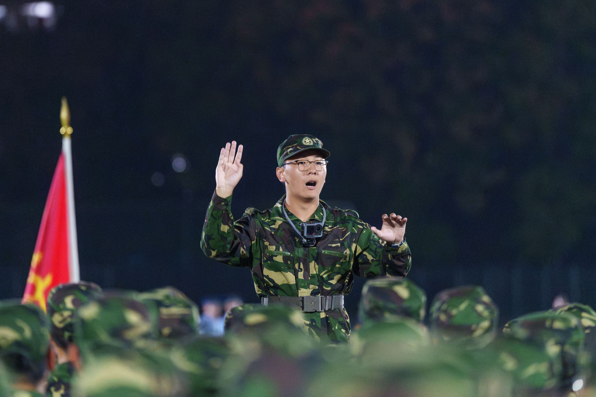 (通讯员:蒋可亭 文晗康 摄影:王魏晶 畅炯锞)9月21日晚,华中农业大学纪念中国人民抗日战争暨世界反法西斯战争胜利八十周年主题青春歌会在东运动场举行。学院三团男生以激昂澎湃的《保卫黄河》展现豪情壮志,十二团女生则以柔美深情的《万泉河水清又清》唱响军民情深,共同为观众带来一场视听盛宴。
