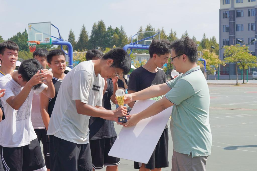 下半场比赛进入白热化阶段,双方都咬紧牙关,尽力抓住机会,交锋十分激烈。动科2102班的0号球员欧阳双成连进两个三分球将全场气氛推到高潮。动医2104班球员们在不利的情形下仍积极调整战略、沉着应对,27号球员冯泽凯连进两球缩小了比分差距。在比赛的最后阶段,每位球员毫不懈怠,他们珍惜赛场的每一秒钟,凭借良好球技与毅力坚持到终场哨声响起的最后一刻。最终,动科2102班以19:29的比分夺魁。比赛结束后,高宏铭分别为动科2102班、动医2104班和动科2103班颁发奖杯,并为动科2102班的欧阳双成颁发了MVP奖杯。至此,2021级“新生杯”篮球赛圆满落下帷幕。