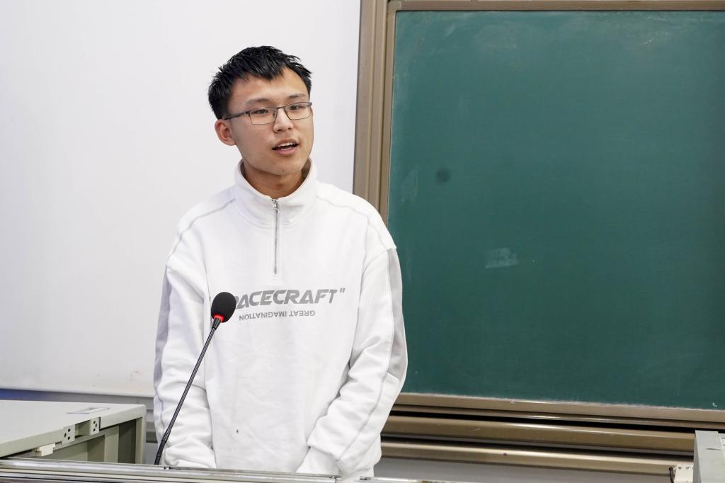 讨论会伊始,以习近平总书记11月19日在第三次“一带一路”座谈会上的讲话为切入点,第三组、第四组与第九组从“一带一路的概念背景”、“一带一路现状与影响”、“党中央战略部署”以及“个人感想”等方面进行讲述。第九组汇报人杜知航从国家过渡到个人层面,将个人与国家的前途命运紧密联系在一起,强烈表达了自己的心声,“作为当代大学生,将自己的专业知识运用到实践并解决实际问题是历史赋予我们的责任和使命”。