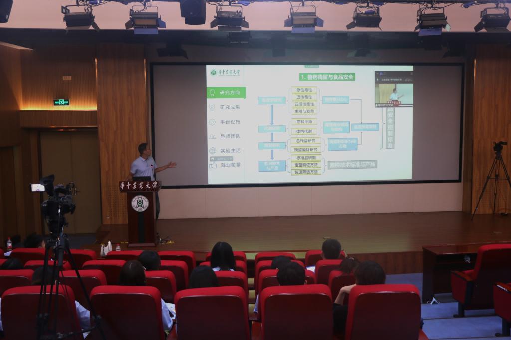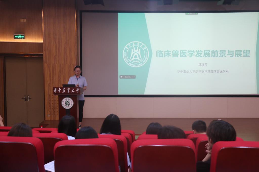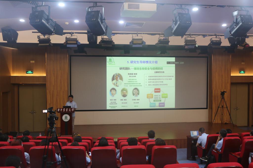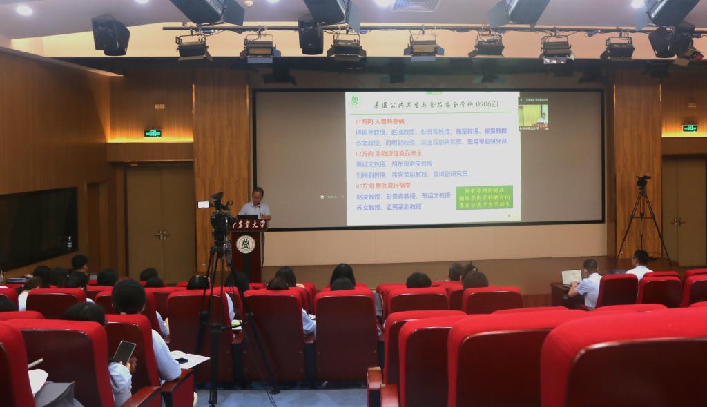 7月19日上午,华中农业大学动物科学技术学院、动物医学院第五届暑期夏令营动物医学学科方向介绍会于农业微生物国家重点实验室B座103报告厅举行。学院副院长彭贵青教授、各学系硕士生导师代表、夏令营动医各营班主任及来自全国多所高校动物医学相关专业的数十名营员参加了本次介绍会。本次介绍会由李文涛教授主持,周祖涛副教授、胡敏教授、赵凌教授、栗绍文教授、彭大鹏教授、刘华珍副教授、吴浩研究员、沈瑶琴副教授、彭贵青教授依次分别从各自学科的科学研究内容、研究生培养理念等方面为在场师生展开讲解。