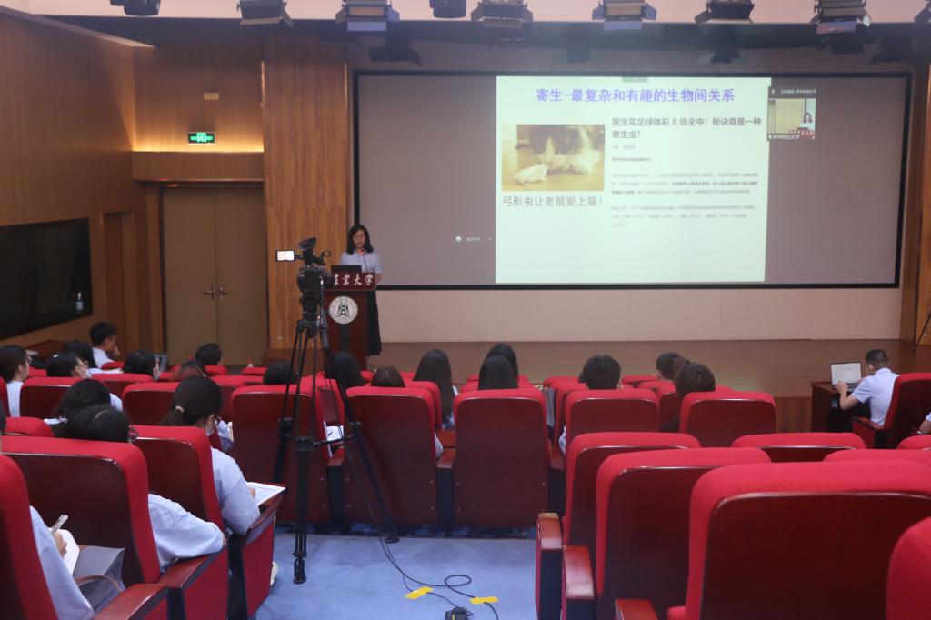 胡敏教授介绍了寄生虫团队的科研内容和方向,她指出,寄生虫研究不仅是一门科学,同时也是一门艺术。“感染了弓形虫的老鼠会爱上猫。”以此奇特现象开场,她的讲解带领营员们走近寄生虫世界的大门,营员们立即被吸引住了,并对寄生虫科学有了更加全面而深入的认识。