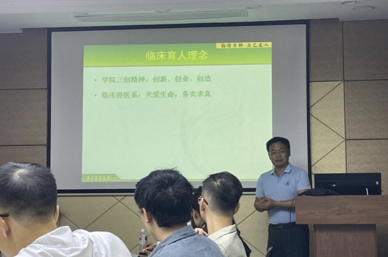 首先,临床兽医系的老师们以教研组为单位,分别介绍了自身的研究方向。学院副院长、学系主任李家奎教授详细介绍了学系的师资结构和发展现状,加深新生对学系的认识和了解。李家奎指出,学院的三创精神和临床兽医系的育人理念对临床兽医学系学子起引领作用,同学们应以医者仁心、家国情怀、三农信念严于律己,勤于阅读,并严守学术道德规范。