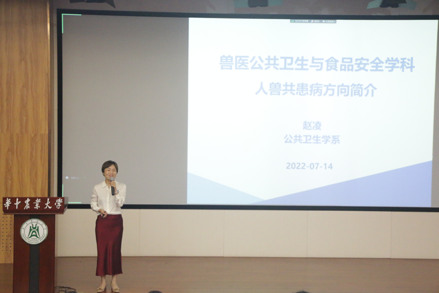 崔旻教授、栗绍文教授分别向营员们介绍了兽医公共卫生学系人兽共患病和动物源性食品安全两个研究方向。栗绍文老师表示,饮食放心、睡觉安心、团队暖心、科研顺心、就业省心、生活开心,这六“心”是团队的突出特点,并表示非常期待同学们加入这个暖心大家庭。
