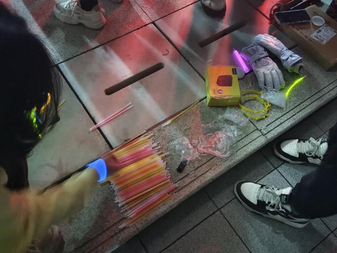 夜幕降临,跑道旁闪烁的荧光条,食堂外挥舞的荧光棒,选手头上可爱的荧光发箍,一闪一闪,点亮襄阳的冬夜。跟着教练的节奏,参赛选手做起热身运动,为荧光夜跑做好充足准备。开合跳、高抬腿、压腿、手腕脚踝……同学们认真跟练,整齐划一的动作,轻松愉快的氛围,跃动着青春的鲜活色彩。
