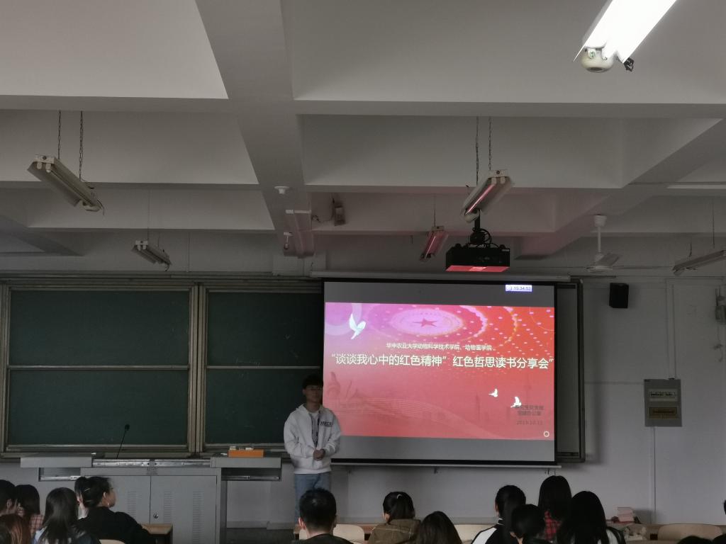 内容提要: 10月11日下午,动物科学院、动物医学院研究生党建办公室在学校第二教学楼403室主持开展了一场“谈谈我心中的红色精神”为主题的读书分享会。五楼自拍