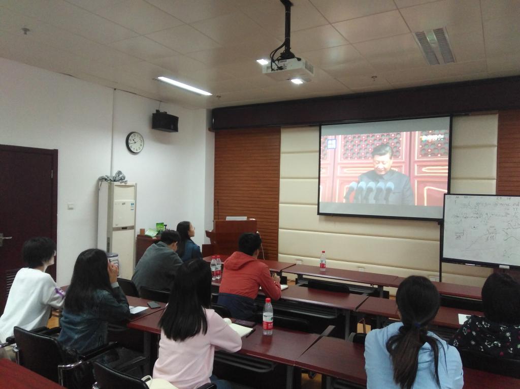 会议伊始,支部书记王子畅同志带领大家重温国庆70周年阅兵仪式,当视频来到习主席庄严而自豪的喊出“伟大的中华人民共和国万岁”、“伟大的中国共产党万岁”、“伟大的中国人民万岁”时,会议室响起了热烈的掌声,在座党员们自豪之情溢于言表,爱国之情在每个人心中传递。白威同志谈到自己感想时说道:“再次观看祖国七十周年华诞阅兵仪式,内心仍然激动不已,习主席的讲话让我深刻体会到我们国家已经从站起来,富起来到现在强起来的伟大飞跃,这70年来经历的苦难和辉煌,让自己有了更强烈的责任感和使命感,作为研究生党员,更要不忘初心,牢记使命,为国家的建设发展贡献自己的力量”