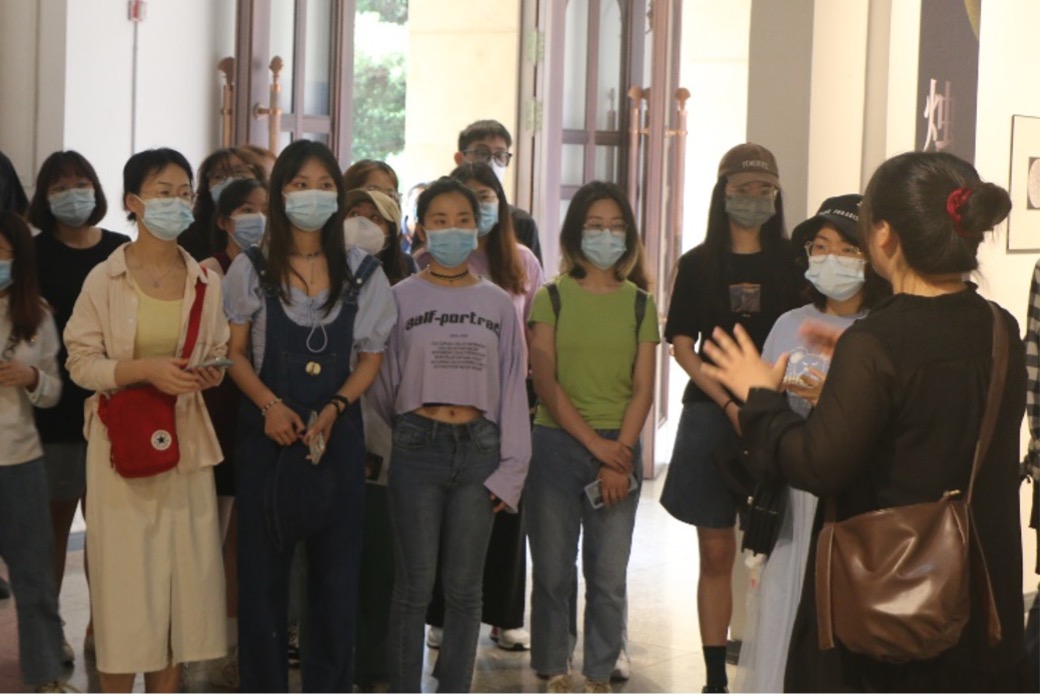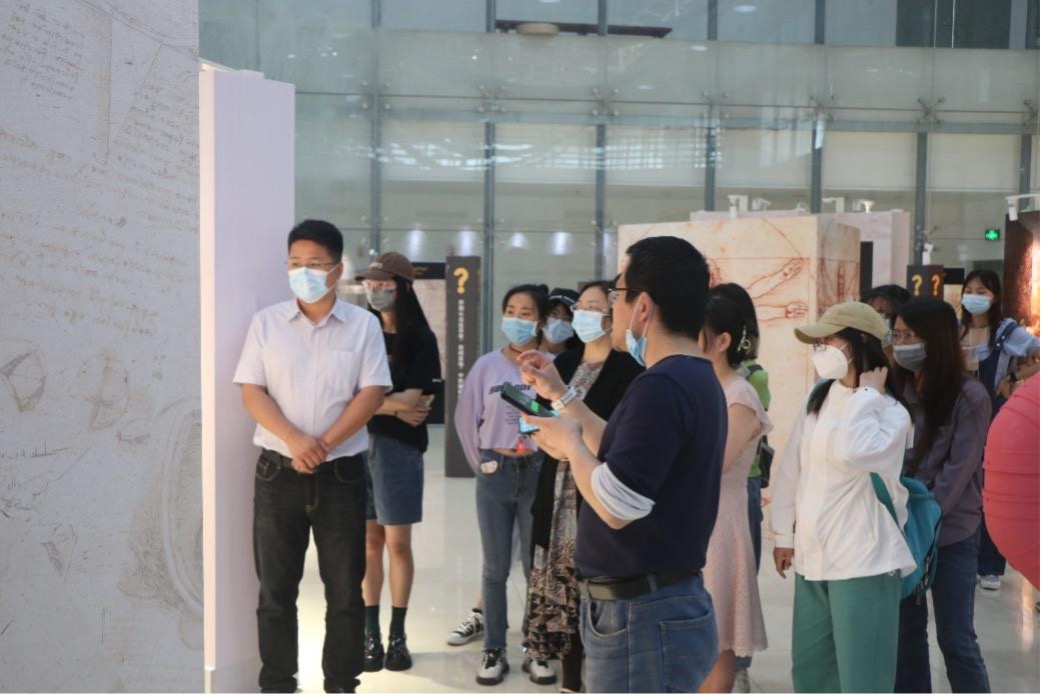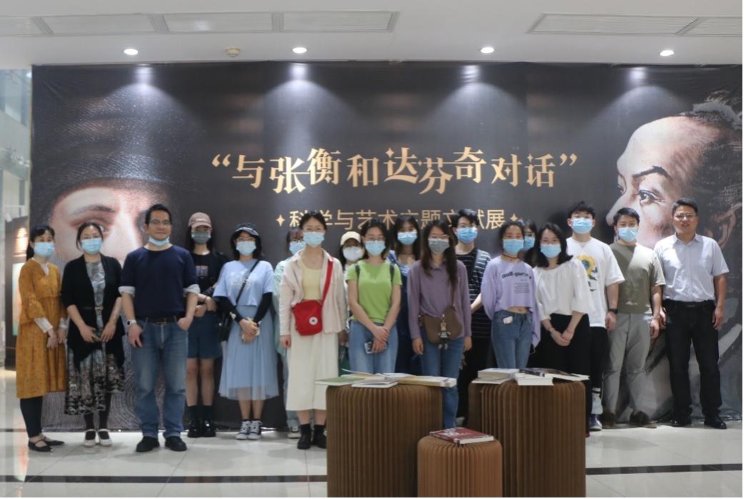 师生与本研同学们一同参观艺术馆“发现学科之美·物演”主题学科展和图书馆“与张衡和达·芬奇对话”科学与艺术主题文献展。