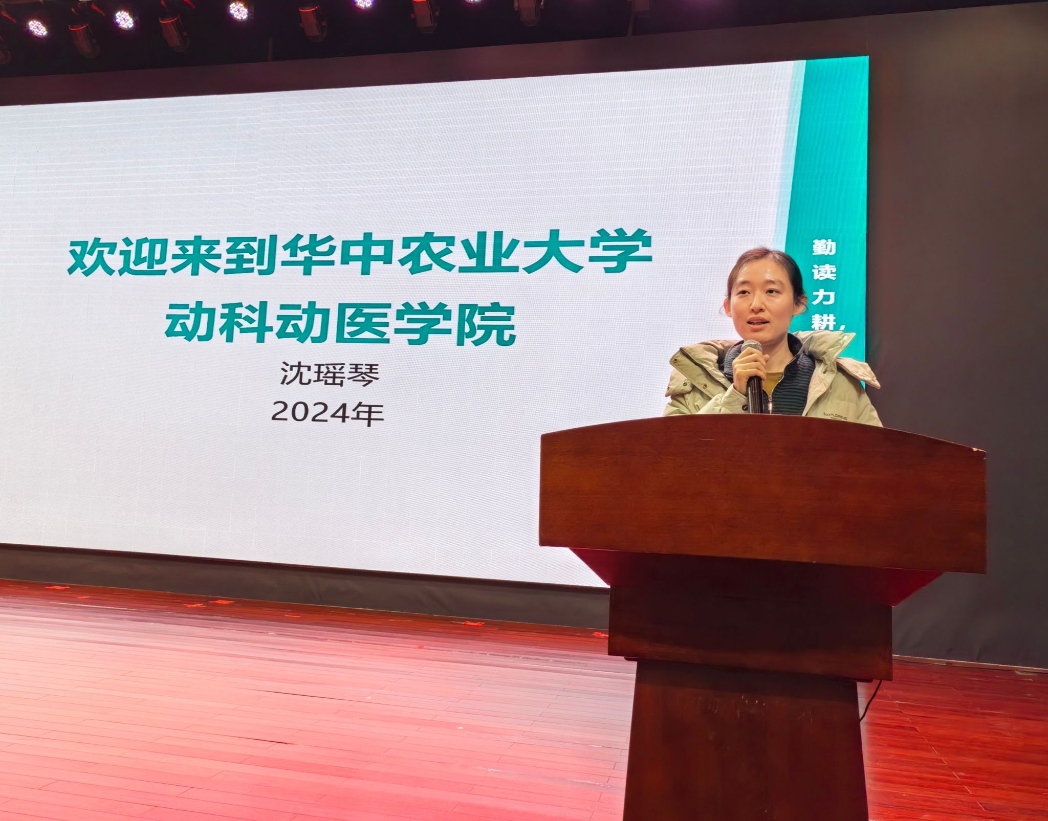 ▲沈瑶琴老师作校情介绍(动物科学技术学院、动物医学院 供图)