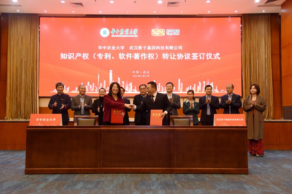 院长赵书红与武汉影子基因科技有限公司董事长李育林共同签订了华中农业大学、武汉影子基因科技有限公司知识产权(专利、软件著作权)转让协议。